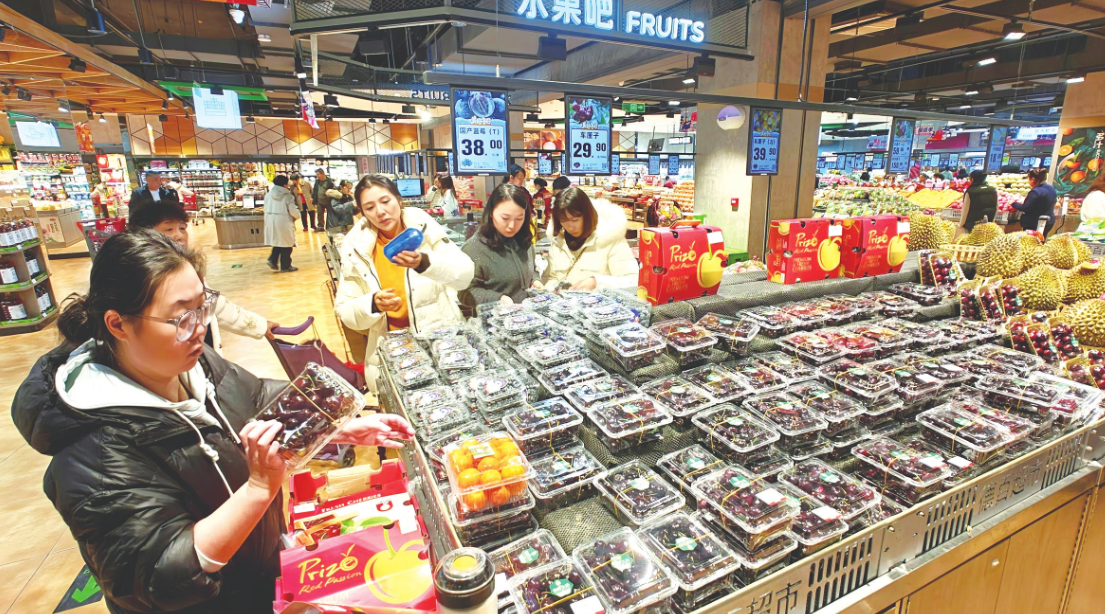 12月23日,市民在澳德乐时代广场超市选购商品。元旦春节“两节”临近,我市扩大优质商品和服务供给,促进消费提档升级。记者胡兵摄