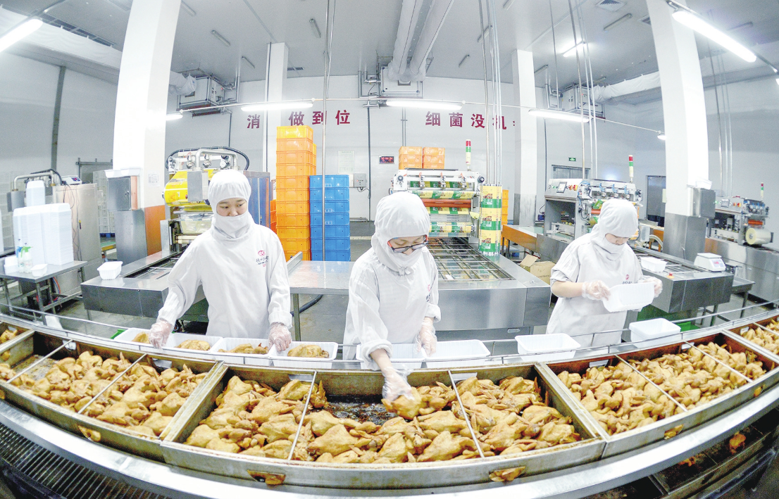 德州扒鸡集团加速建设海南现代化产业基地,让“德州味”香飘世界餐桌。图为公司员工正对产品进行分拣和预包装