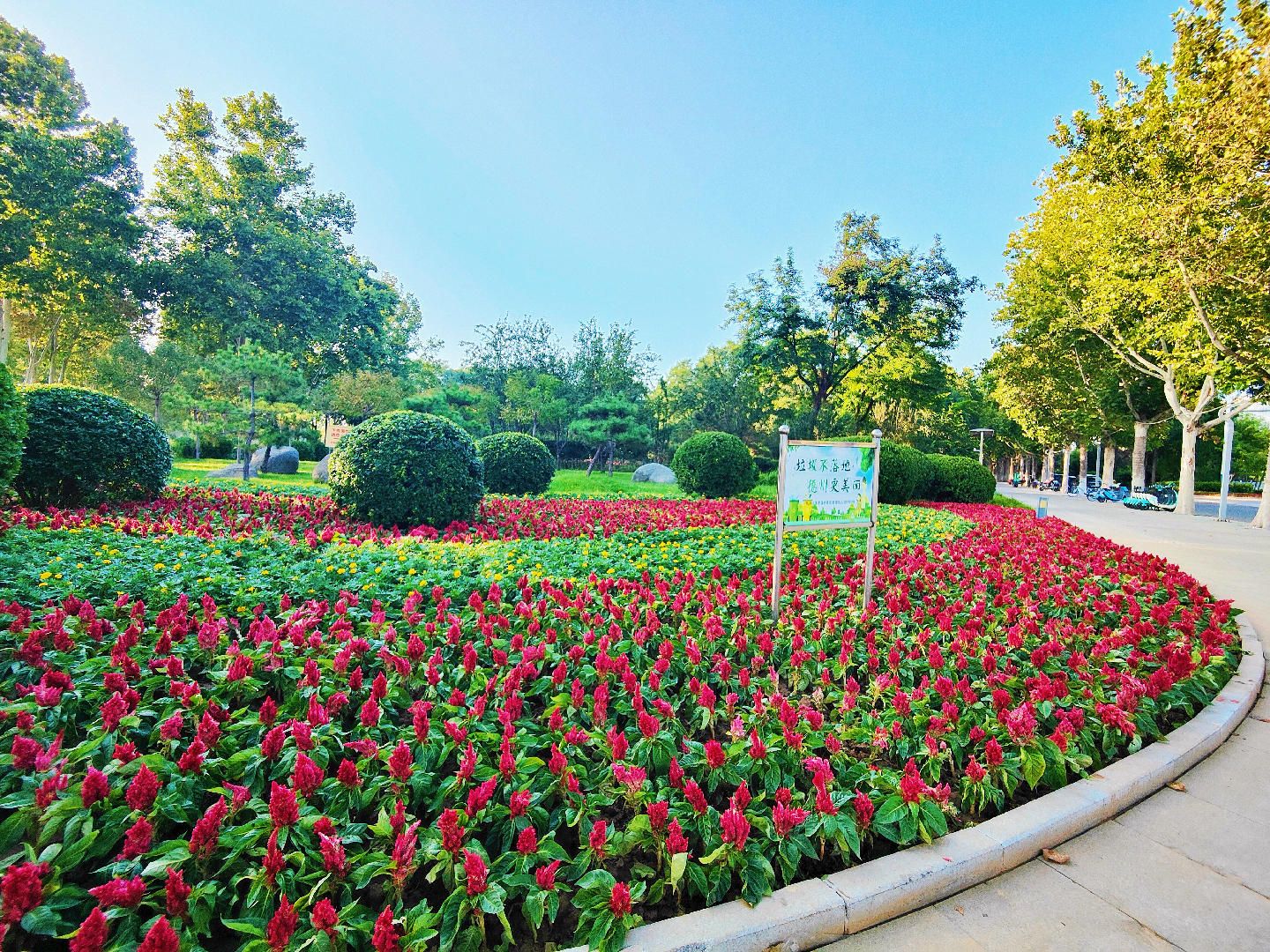 本次种植的花卉以鸡冠花、万寿菊为主,用红、黄、橙等暖色调的花景布置,衬托金秋丰收的喜悦,传递灿烂阳光般的欢腾,烘托热烈喜庆的节日氛围。