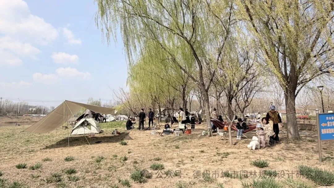 景区里开阔舒展的露天大草坪,是当之无愧的人气C位。暖阳倾洒,青草茵茵,市民们携家带口、邀约好友,早早赶来抢占心仪的露营点位。大家熟练地支起各色帐篷、铺好软糯的野餐垫,摆上精心准备的零食、水果与下午茶,一家人围坐闲谈,好友们举杯畅聊,孩子们在草坪上肆意奔跑撒欢。