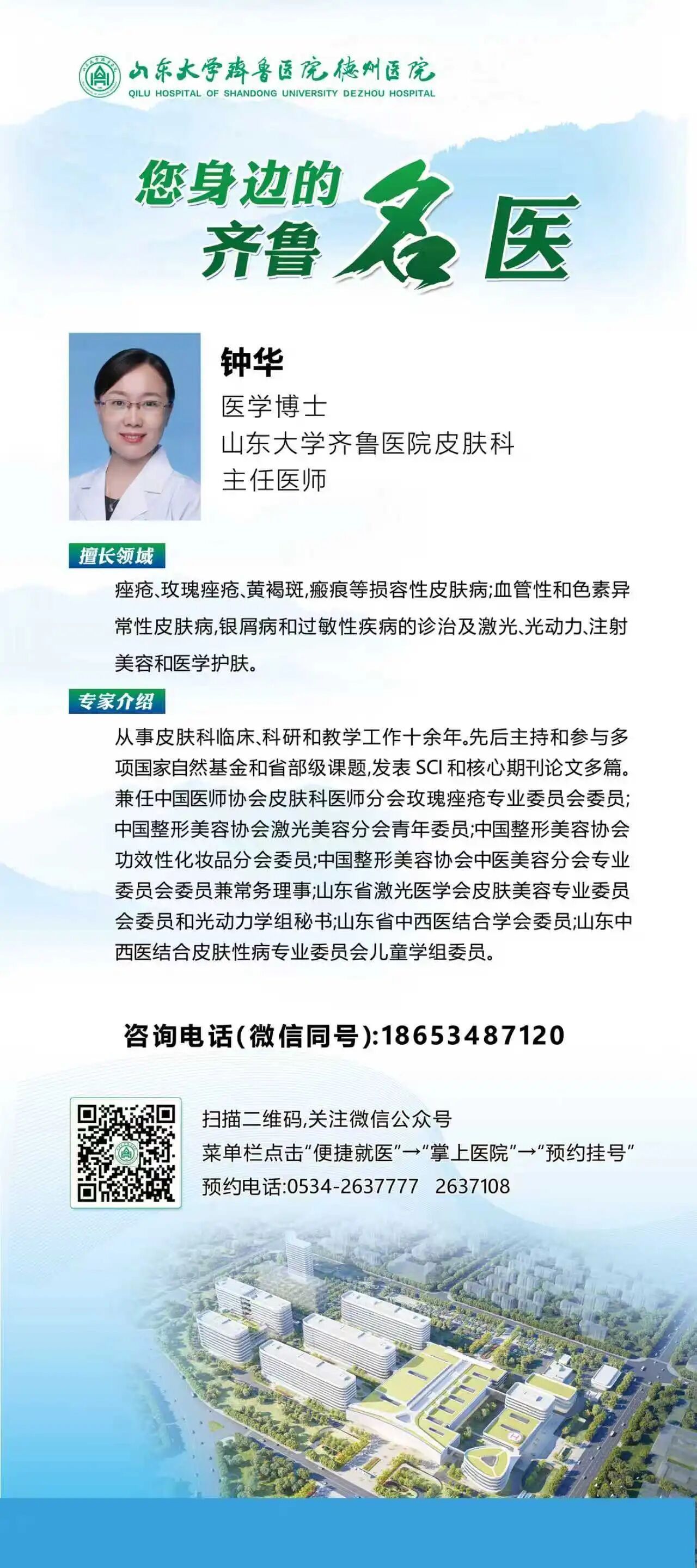 4月4日,山东大学齐鲁医院皮肤科专家钟华到齐鲁医院德州医院中心院区坐诊,让德州百姓在家门口看名医,享受便捷的诊疗服务。