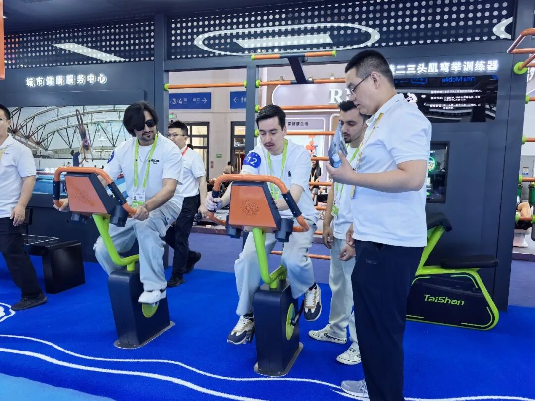北京师范大学体育与运动学院副教授、奥运冠军陈一冰一行现场感受智能健身的乐趣带领游客现场感受智能健身的乐趣。几位来自印尼的留学生用流利的中文感慨道:“泰山体育将前沿科技与体育健康深度融合,这种前瞻性的理念与实践,必将跨越国界,影响深远。”此次新品发布,是泰山体育深耕体育健康领域的重要里程碑,标志着城市健康智能服务迈入全新发展阶段。未来,泰山体育将持续以创新驱动发展,助力中国体育事业再谱新篇,共筑全民健康美好未来。