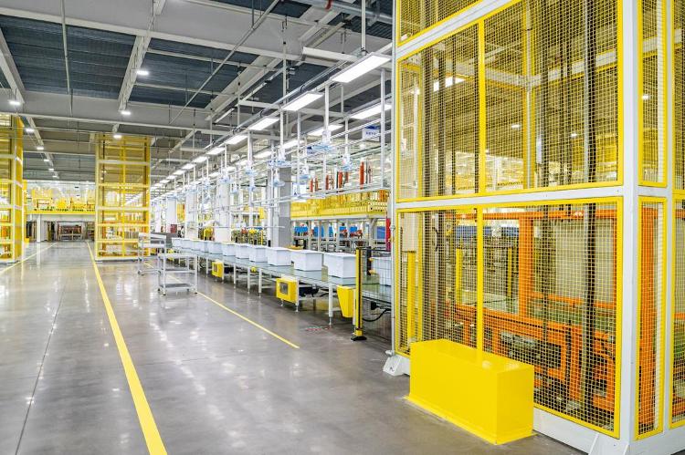 菏泽市郓城县一家科技公司,工业机器人在生产气动元件。