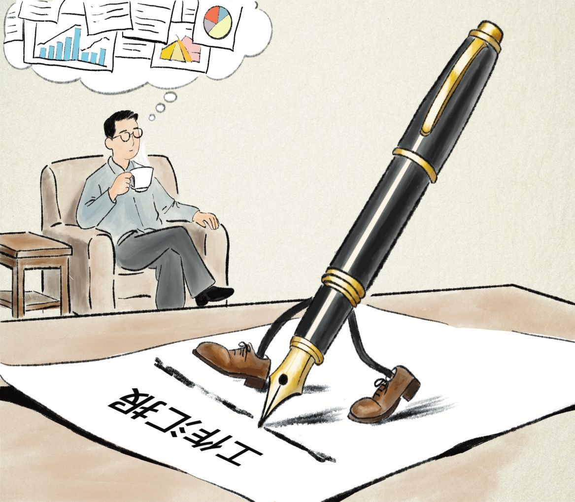当前基层出现一种怪象:一些干部习惯于“以笔代干”。上级部署甫一下达,他们第一反应不是深入一线,而是坐在办公室里编方案、凑数据、造亮点。各种材料包装精美、数据详实,看似非常周密,实则“纯属虚构”。
