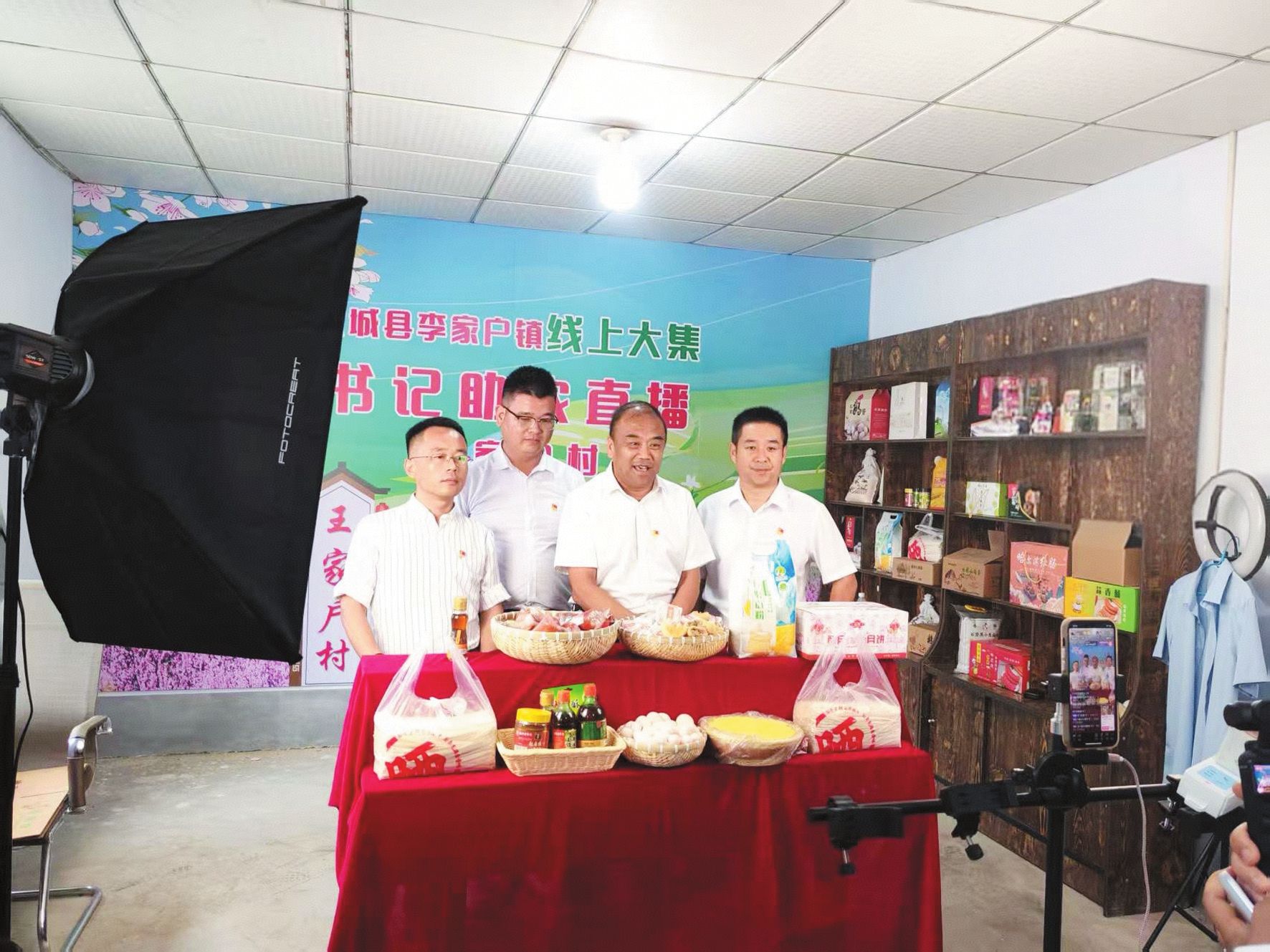王连海(右)与“甄选好物”书记联盟成员开展助农直播