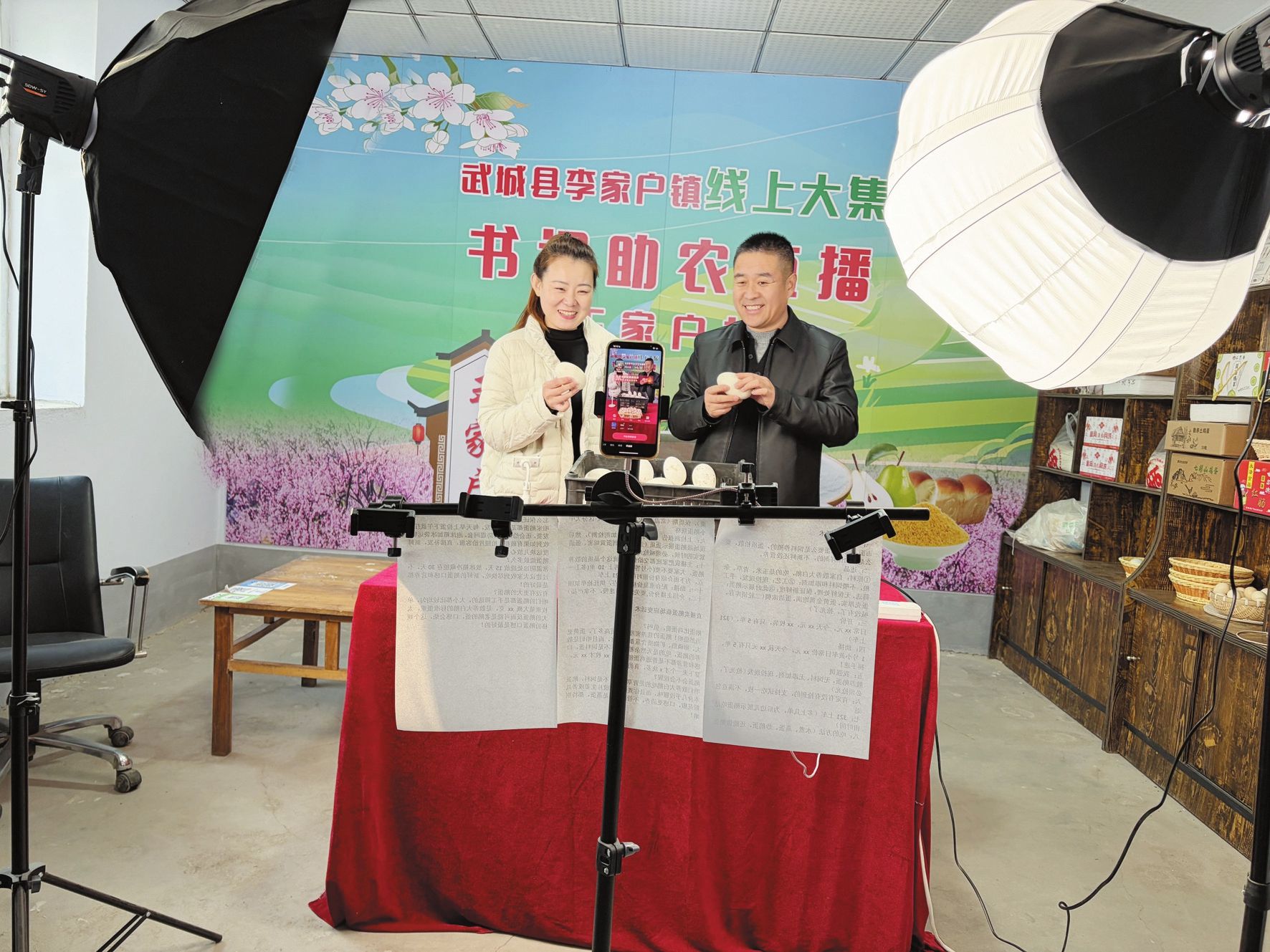 我想了个办法:在直播间设个“助播”岗位。我跟想尝试的村民说:“你啥也不用说,就站我旁边,听我怎么讲,偶尔搭个腔就行。等你觉得适应了,咱俩换位置,换我来搭腔。”