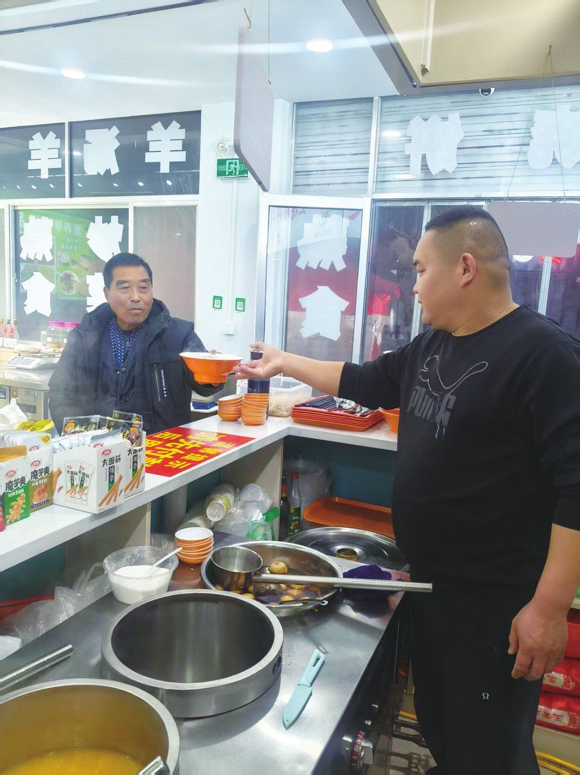 陈亮(右)的快餐店让众多打工者吃上热乎乎的早餐