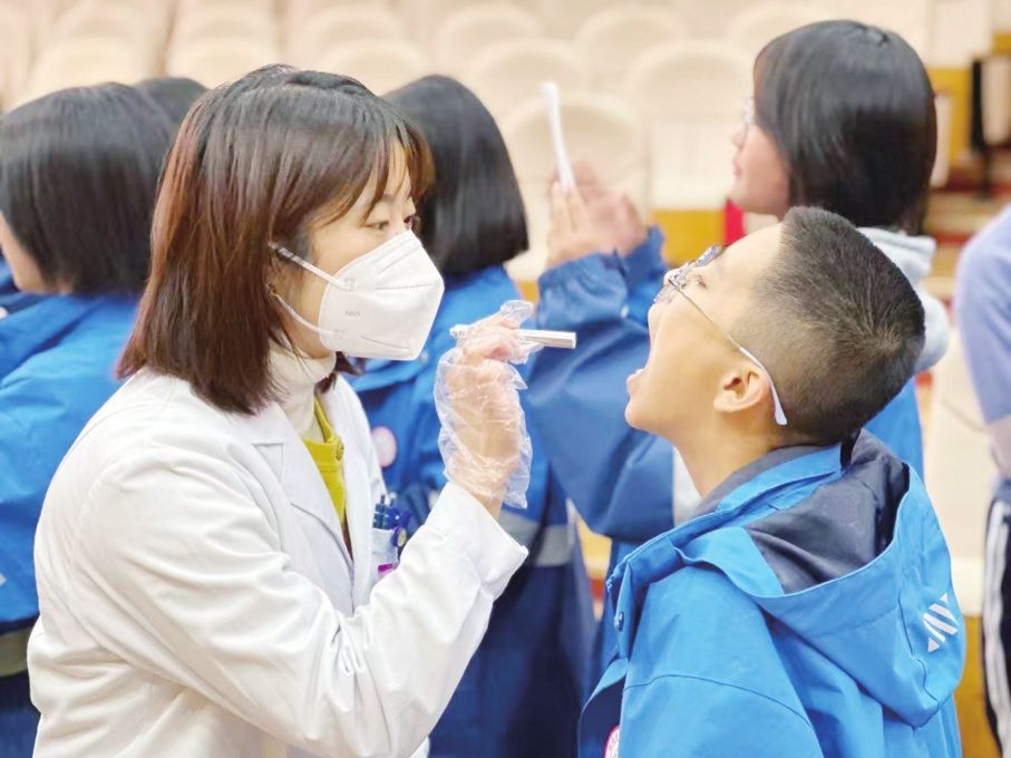 为学生检查口腔
