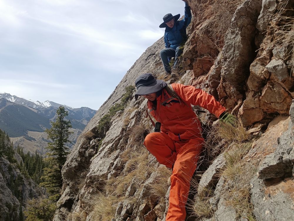 地质队员在山地间探矿。新华社发(赵博摄)