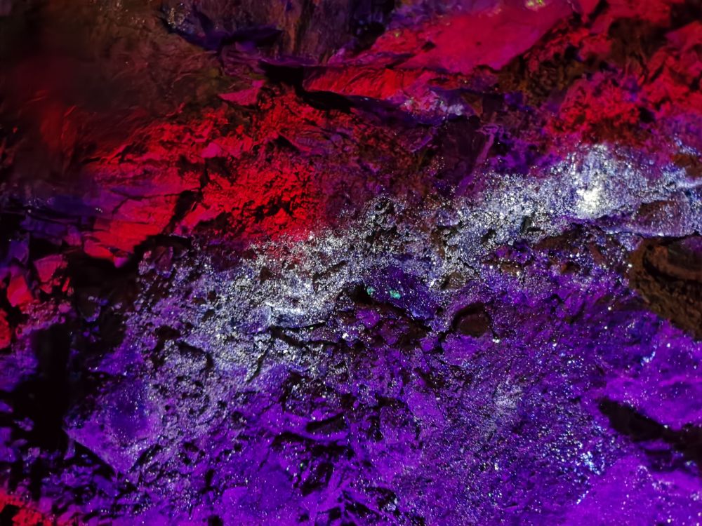 白钨矿是一类特殊的矿种,在紫外光照射下会发出蓝色荧光,勘探时需在夜晚用紫外灯照射岩心来检验,这意味着赵博和同事们结束白天的工作后,晚上10点还要再次上山。他说,矿区位于海拔4000多米的山上,临近中秋,夜间气温已低至0℃,他们要在寒冷的野外工作到凌晨12点左右才能回到项目部。但赵博自得其乐:“紫外光照矿很震撼。亮灯的瞬间,漫山遍野的浅蓝色光点亮起,就像星空撒进山岩中。”