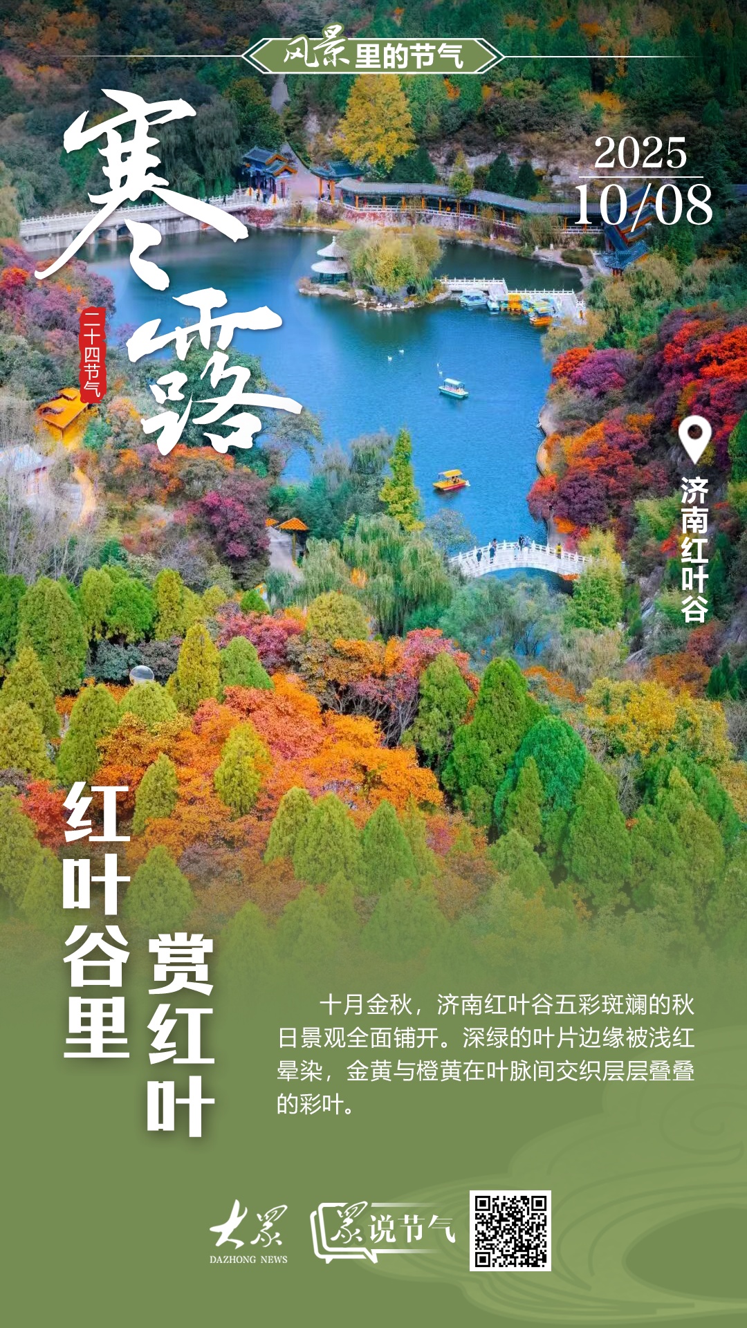 时至寒露,岁在深秋,寒露是秋季的第五个节气,此时露气寒冷,万物渐萧,天气由凉转寒,昼夜温差增大。