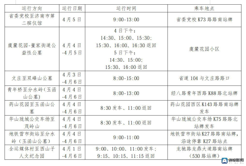 为精准满足市民祭扫出行需求,济南公交将推出8条祭扫专线,市民乘客可根据发车时间,到指定乘车位置乘坐。