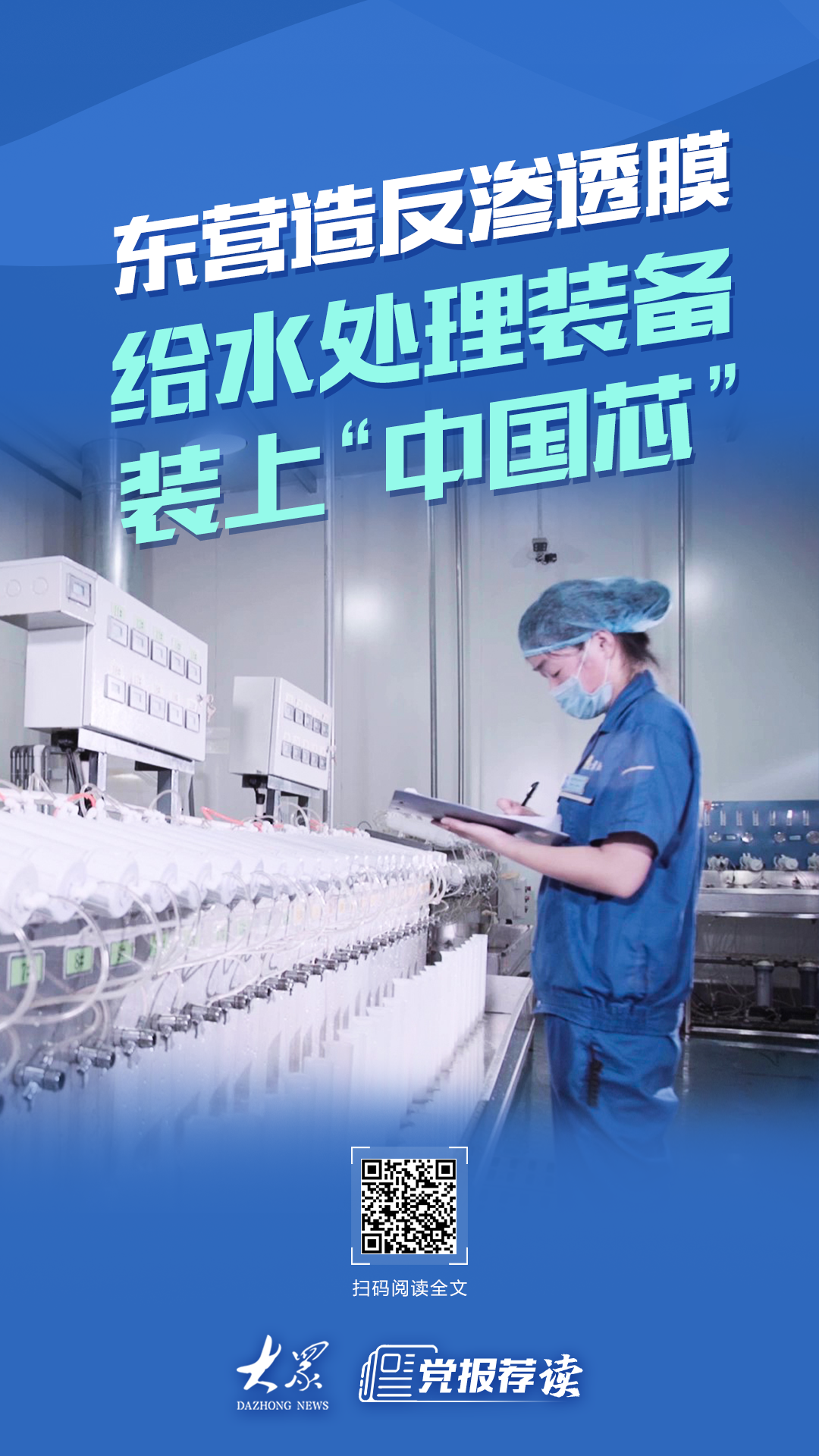 “我们自主研发的反渗透膜,其过滤孔径小至0.0001微米,仅为头发丝直径的百万分之一,能够精准拦截水中重金属离子、微生物和盐类,只允许纯净的水分子通过,过滤精度达到国际顶尖水平。”山东九章膜技术有限公司研发部部长张盈盈介绍。