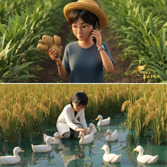 晚会还聚焦新农人与新科技。依靠AI管理3000亩超级棉田的“科技兴农搭档”艾海鹏和姜波,以手机为新农具的“云端姜农”孟晓帆,实现“稻虾鸭共生”的稻田“魔术师”田淑娴,从研究“导弹”到专注“捣蛋”的养殖大户董平天,他们用智慧与担当挥洒着乡村振兴的青春热情。