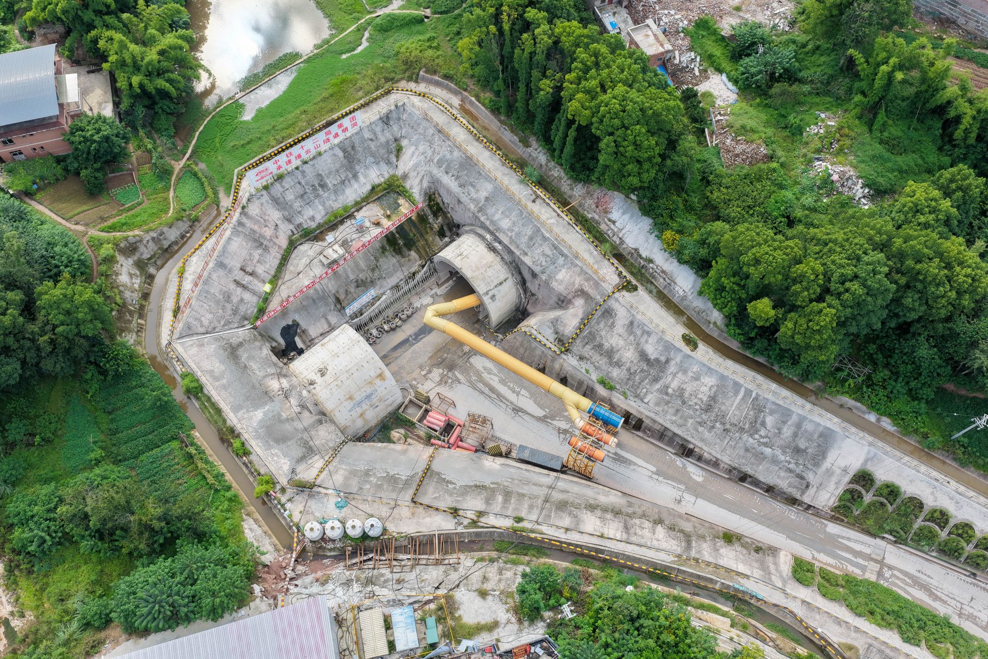 这是9月27日拍摄的成渝中线高铁缙云山隧道建设现场(无人机照片)。