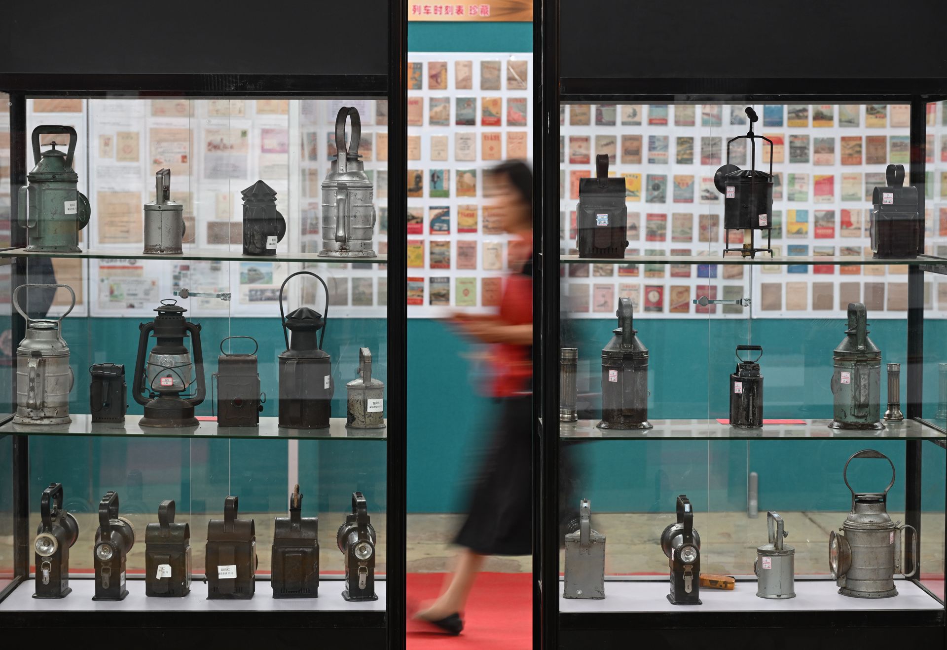 9月27日,观众在第三届中国铁路文化收藏博览会上参观铁路文化老物件展。