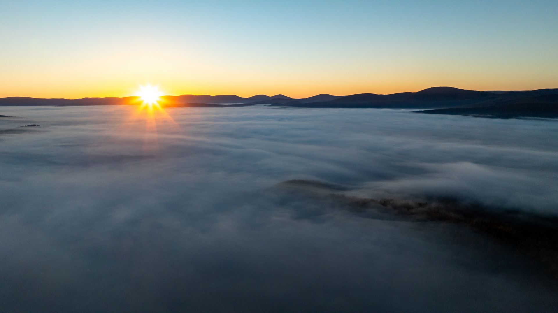 9月29日拍摄的内蒙古阿尔山国家森林公园日出风光(无人机照片)。