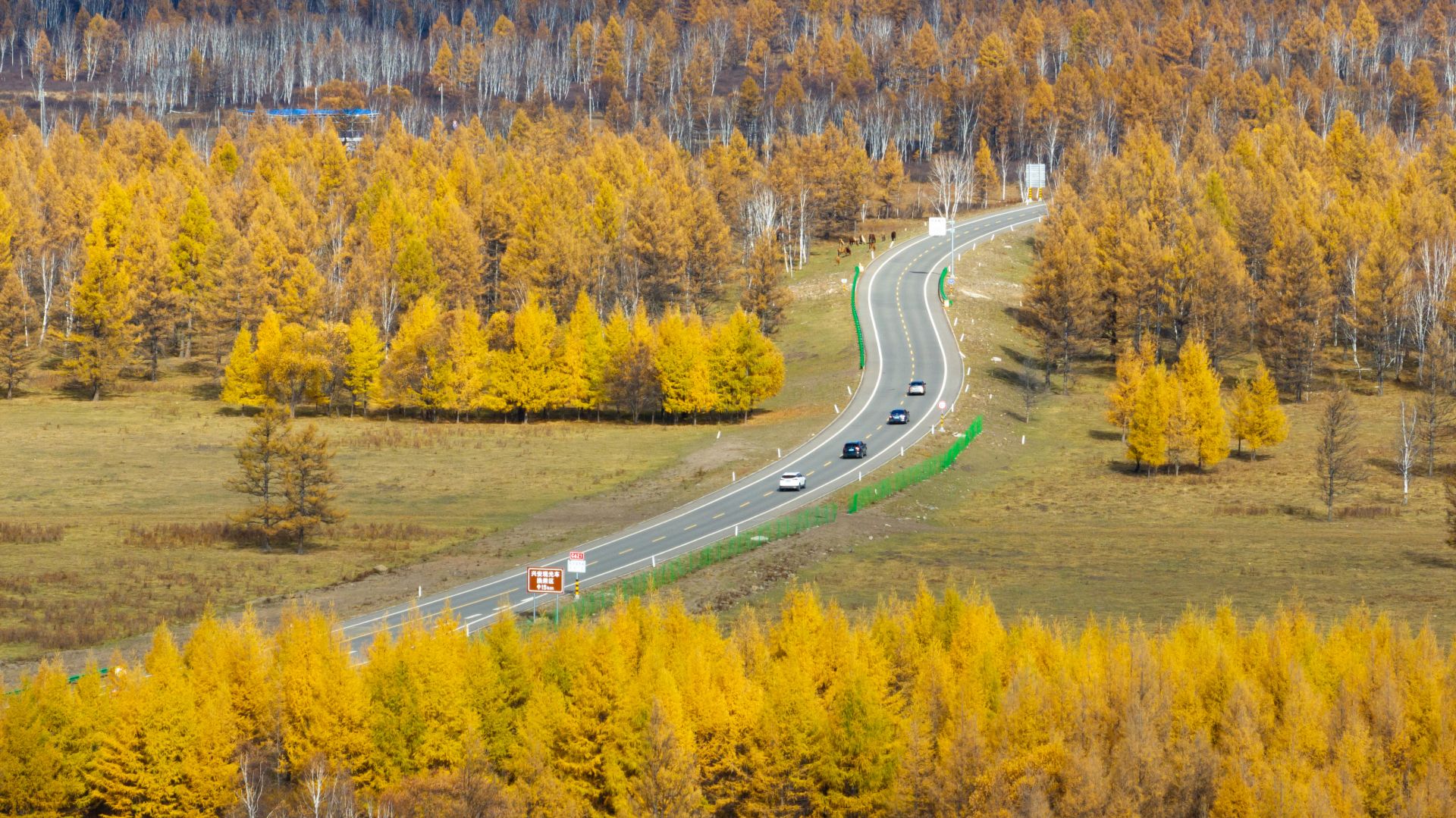 9月29日,游客在内蒙古阿尔山国家森林公园驾车游玩(无人机照片)。