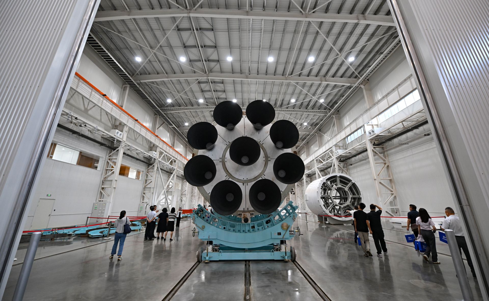 这是星际荣耀运载火箭总装总测复用工厂内设置的双曲线三号运载火箭机械模拟箭(10月9日摄)。