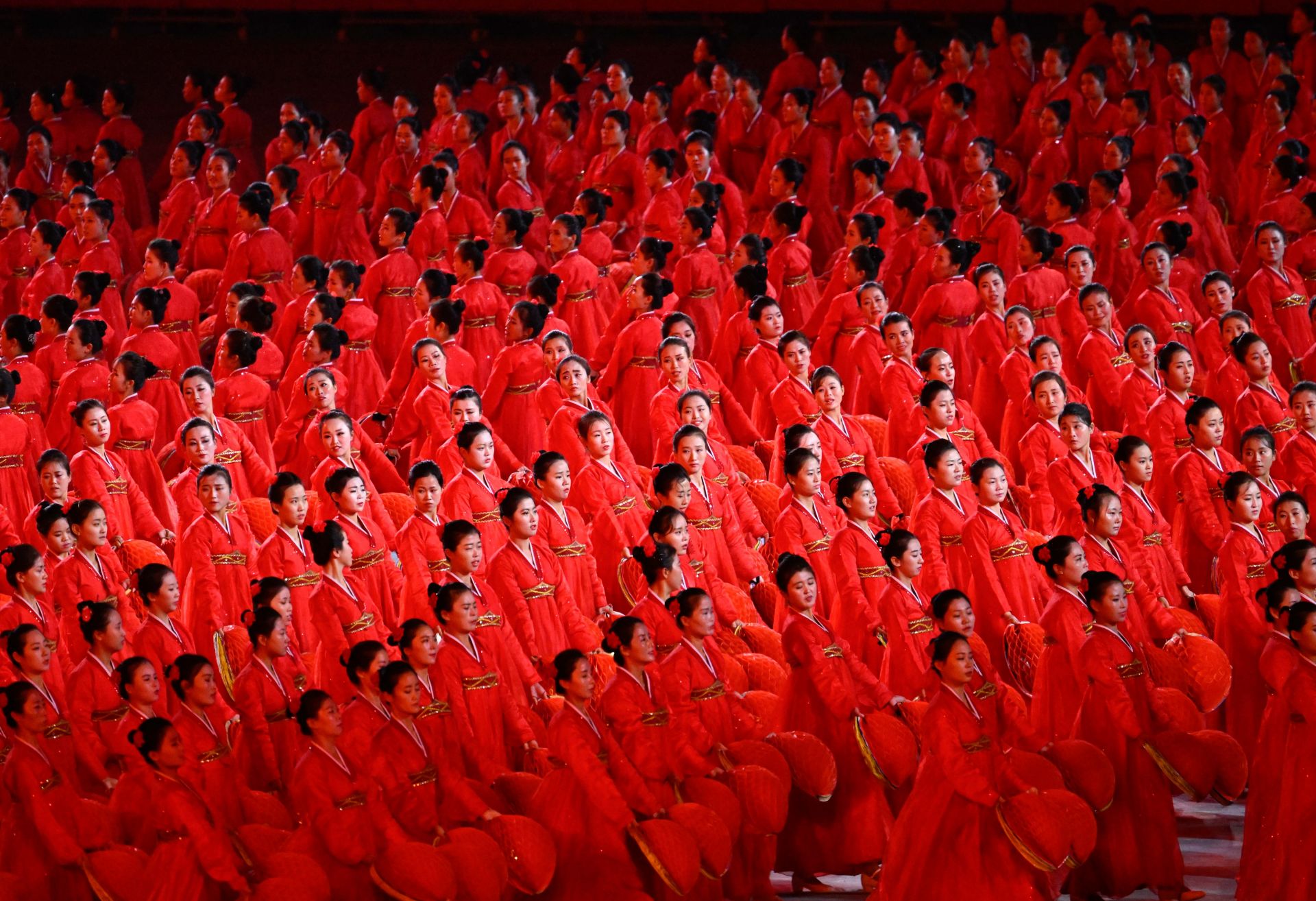 10月9日,庆祝朝鲜劳动党成立80周年大会在平壤五一体育场举行。当晚,这里还举行了大型团体操和文艺演出。