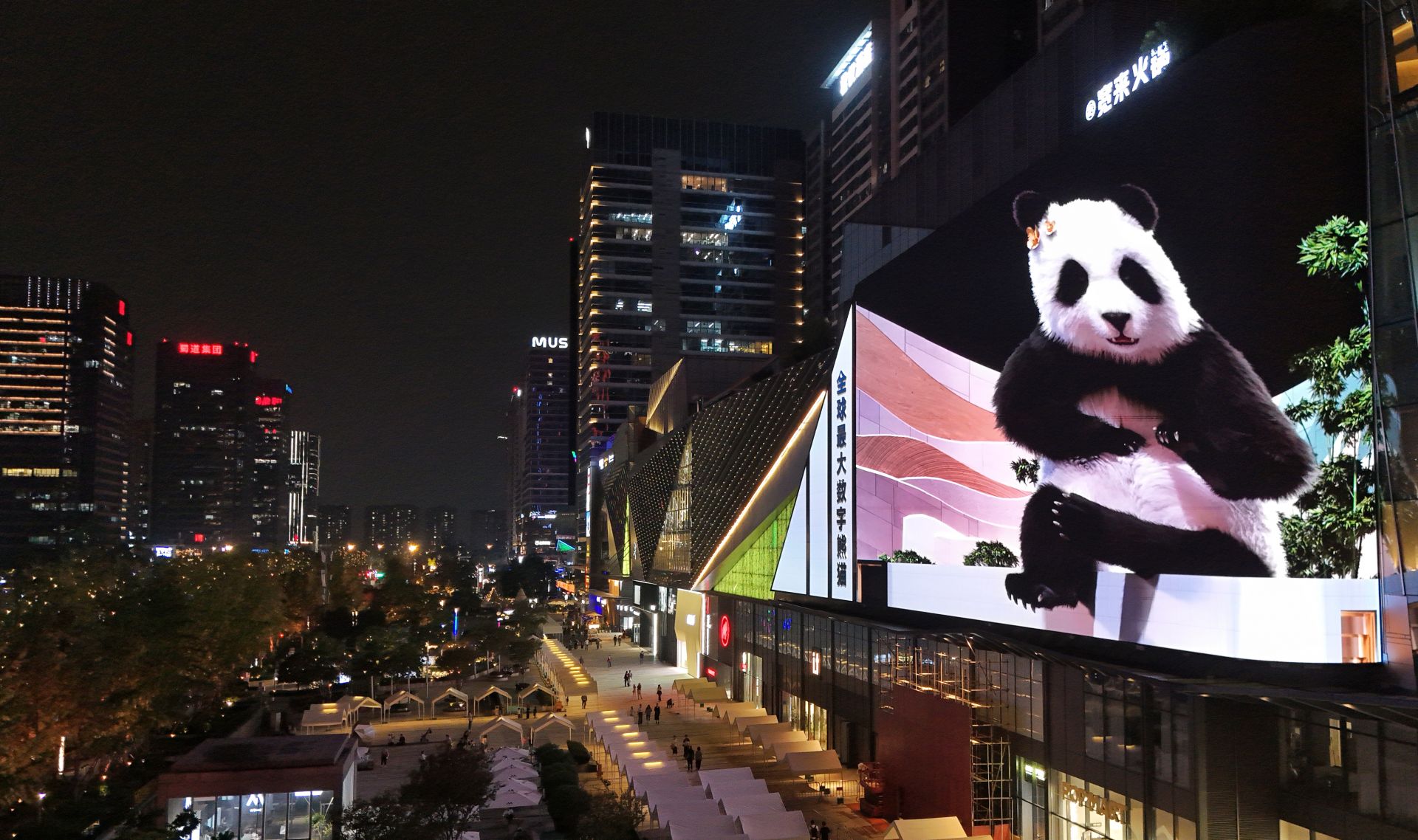 近日,成都高新区交子大道上的裸眼3D数字熊猫上了全新动效,一只裸眼3D数字熊猫灵巧地“爬上”建筑外墙,不时“转头看向”围观人群,最后悠闲地“坐下”,吸引了众多市民游客来此打卡。