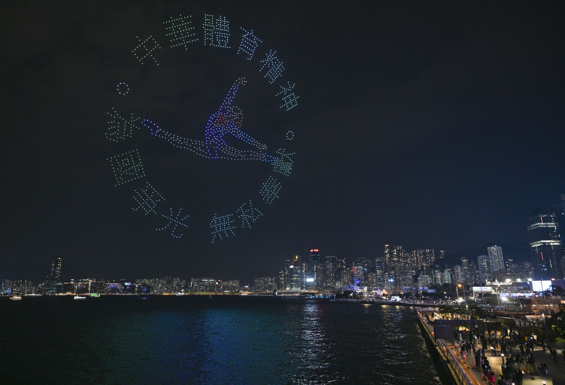 11月18日,“体育力量 闪耀香江”大型无人机表演在香港维多利亚港举行。