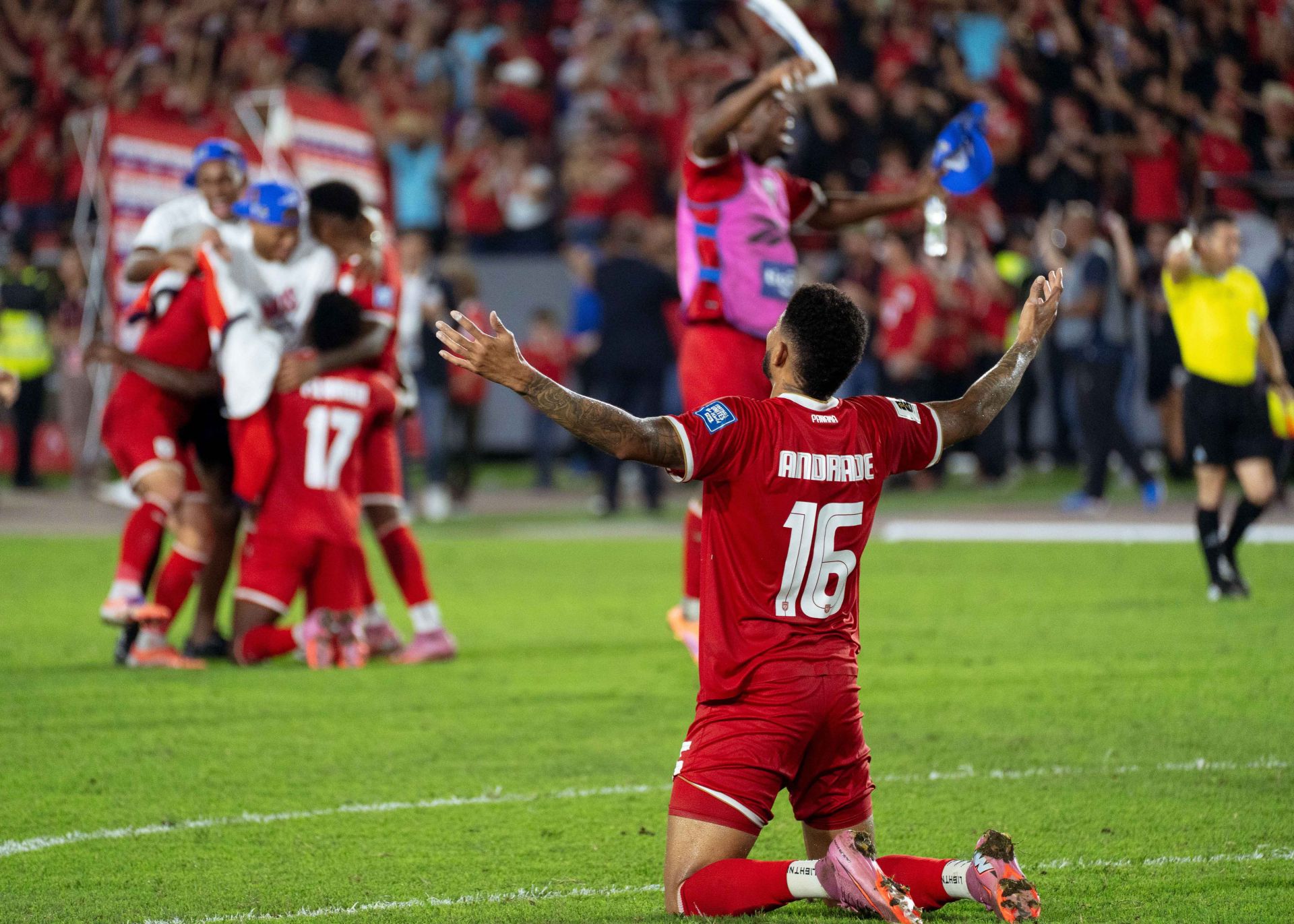 11月18日,巴拿马队球员安德烈斯·安德拉德(前)庆祝比赛胜利。