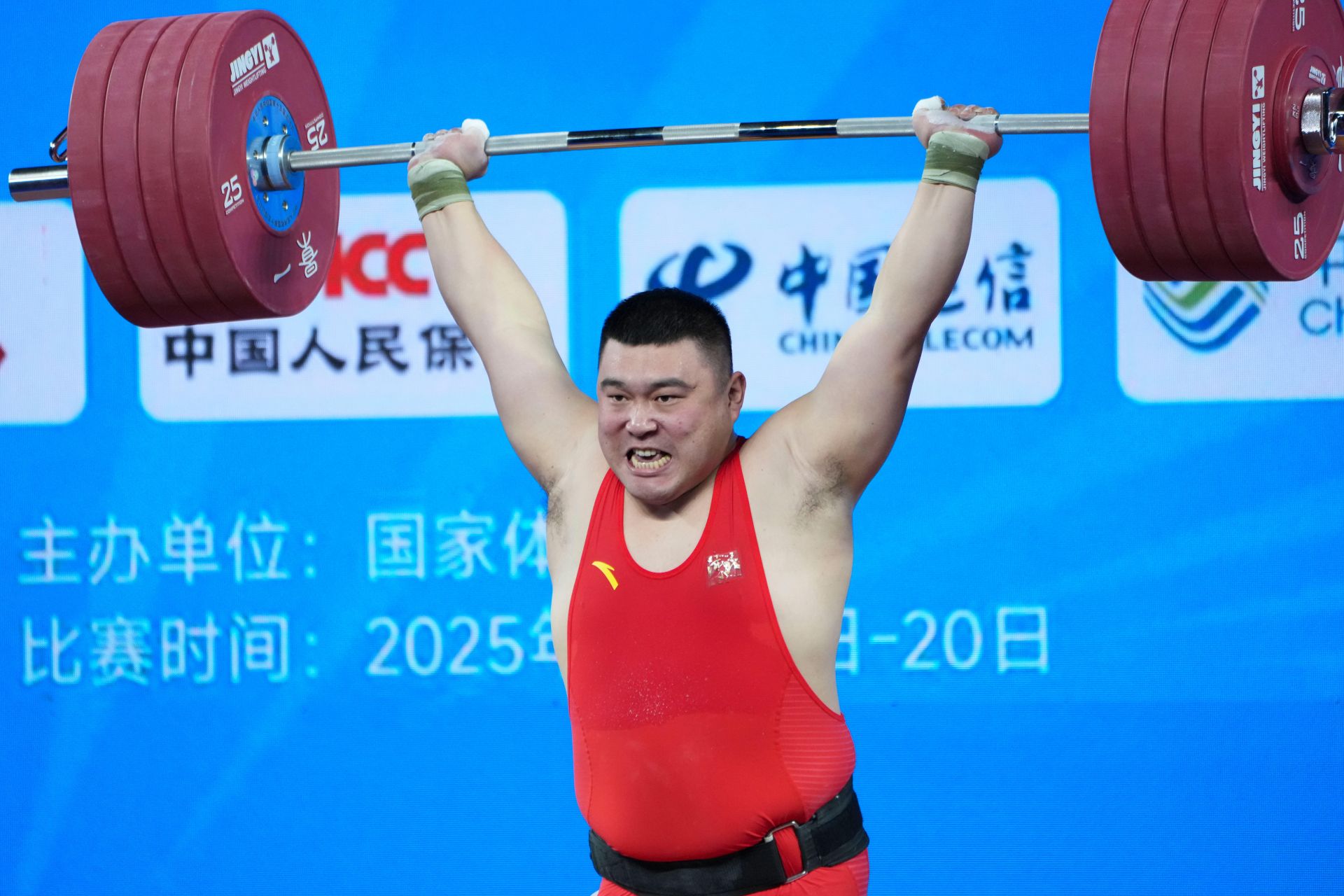 11月20日,河北队选手张喜亮在挺举比赛中。最终,他获得冠军。