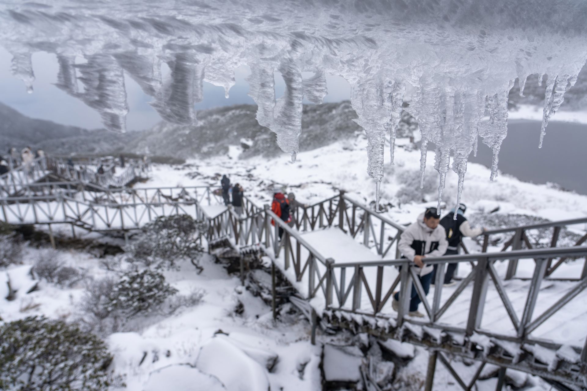 11月24日,云南大理苍山景区洗马潭迎来入冬的首场降雪。