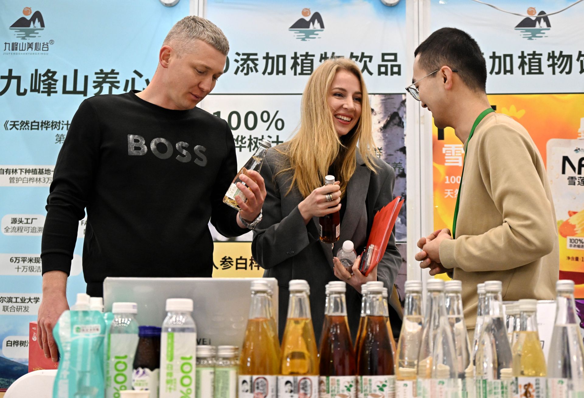 12月19日,客商在博览会上交流洽谈。