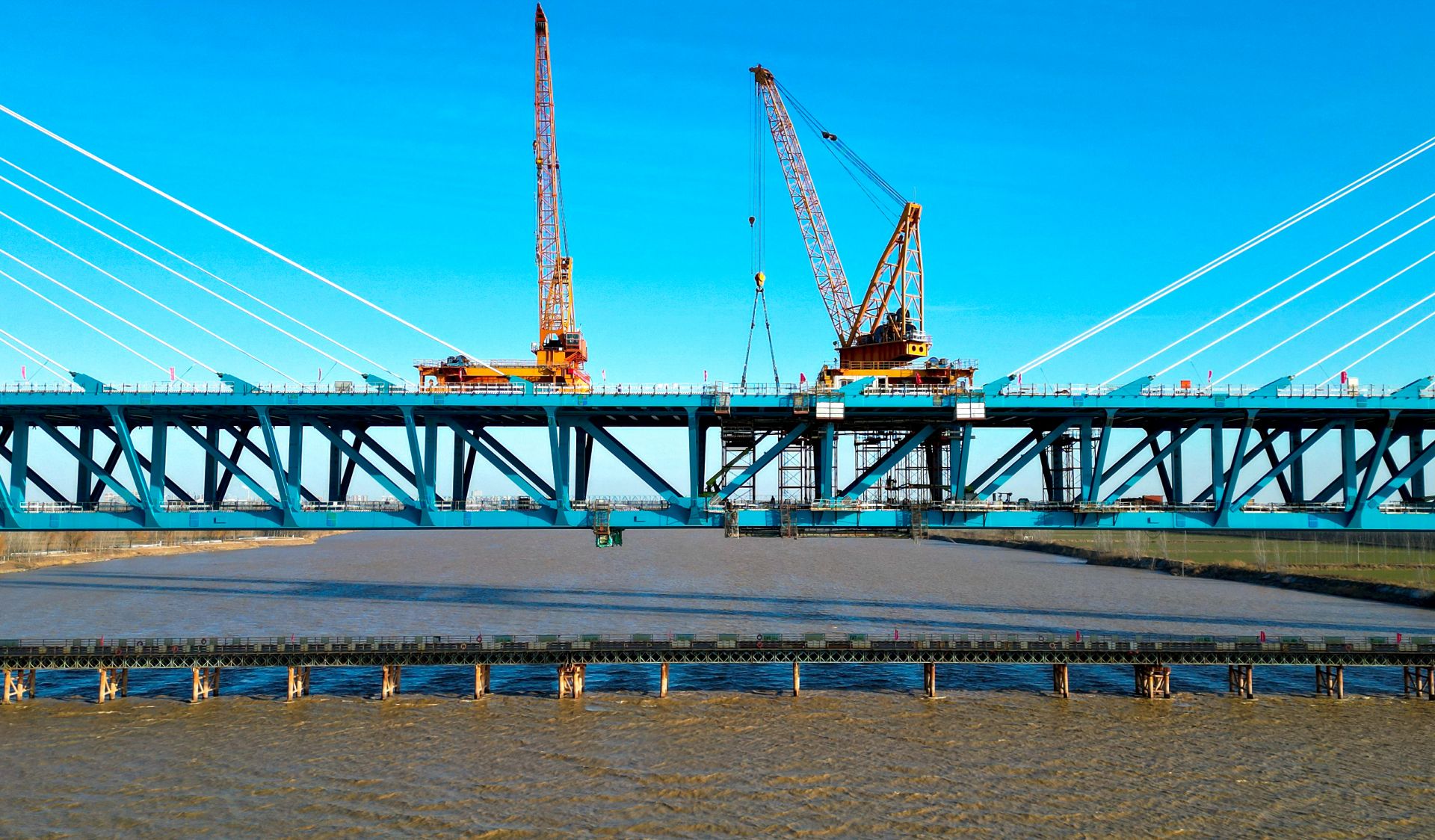 12月31日,津潍高铁东营黄河公铁大桥顺利合龙,为后续铺轨通车奠定基础。据了解,该桥是津潍高铁全线的重点控制性工程,全长2230.4米,由主桥、副桥和引桥三部分组成,下层为双线高速铁路,上层为双向六车道一级公路。津潍高铁是国家“八纵八横”高铁网中京沪通道和沿海通道的重要组成部分,也是京津冀协同发展、连接山东半岛和长三角地区的重要交通干线。