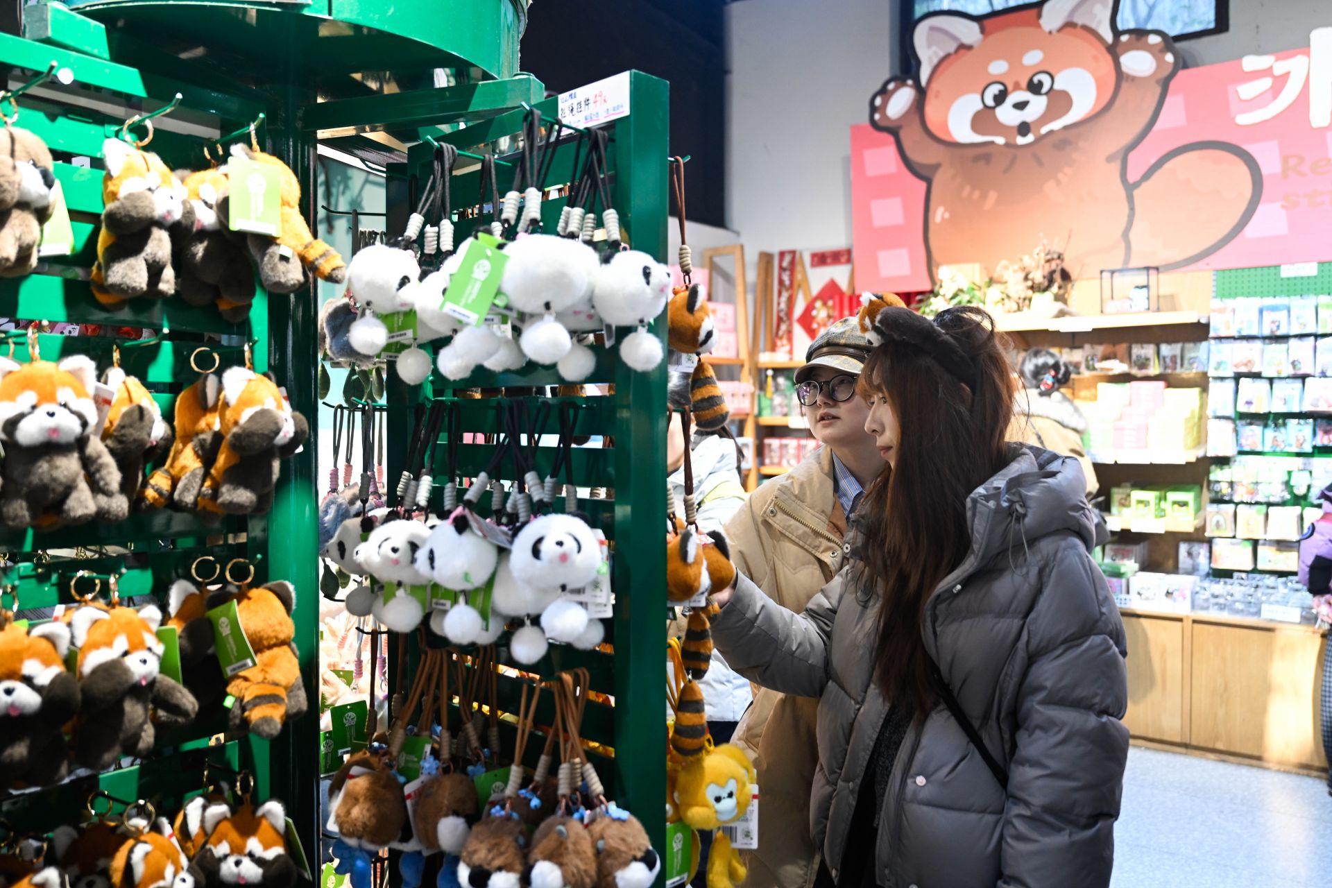 1月3日,游人在南京红山森林动物园选购文创产品。