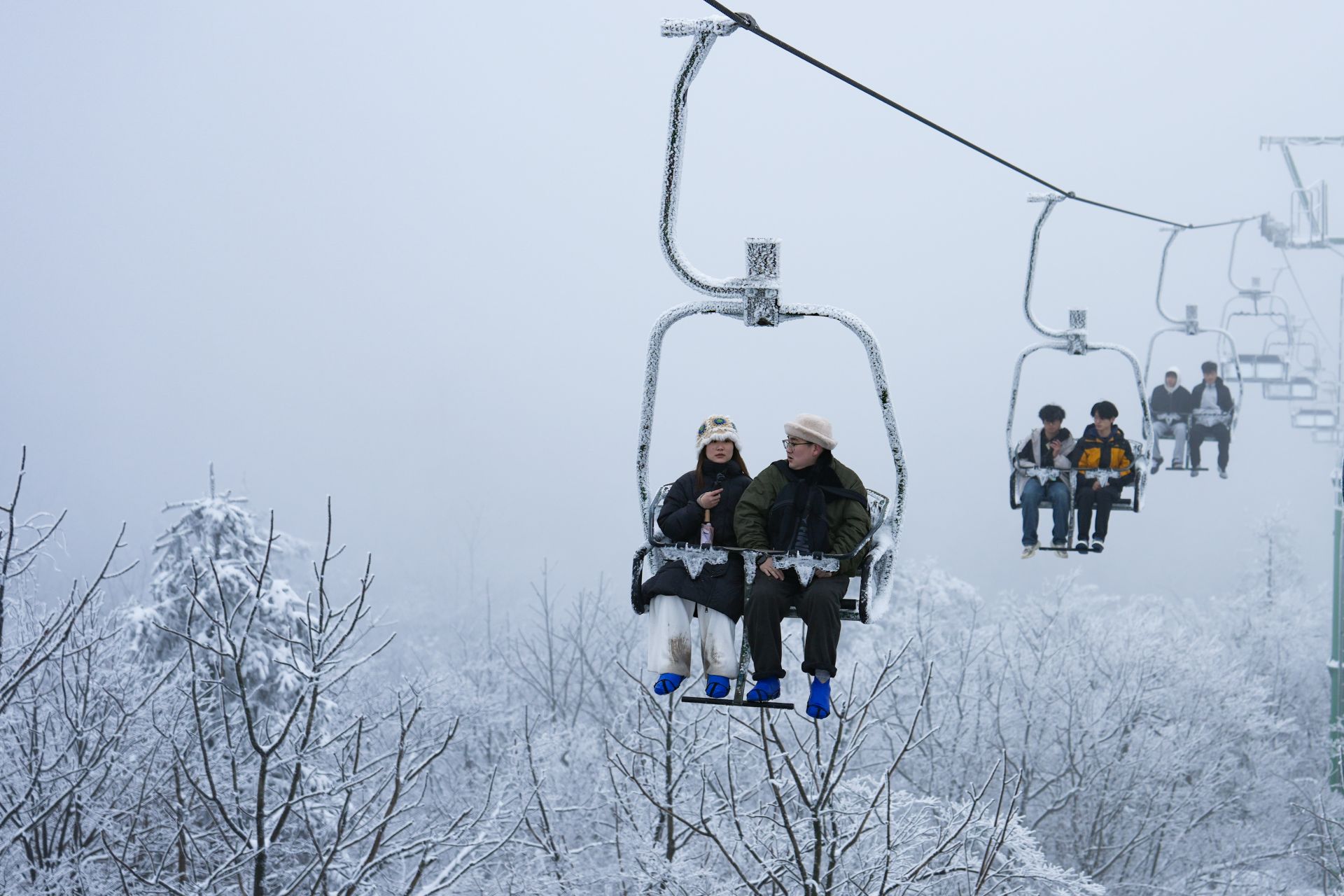 1月3日,游客在湖南省张家界市天门山景区游玩。