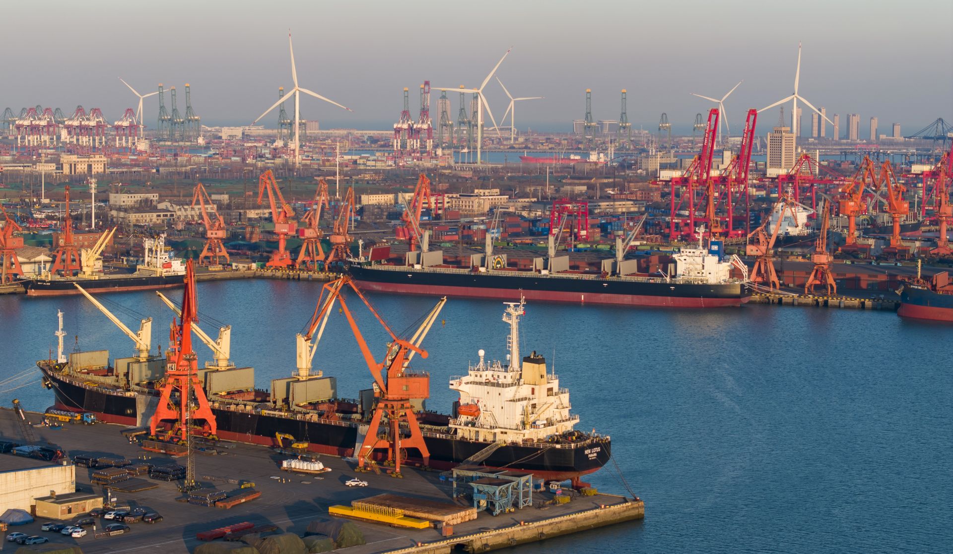 元旦假期,天津港各大港区巨轮频靠,一派繁忙景象。工人奋战一线抢抓生产,力争新年“开门红”。