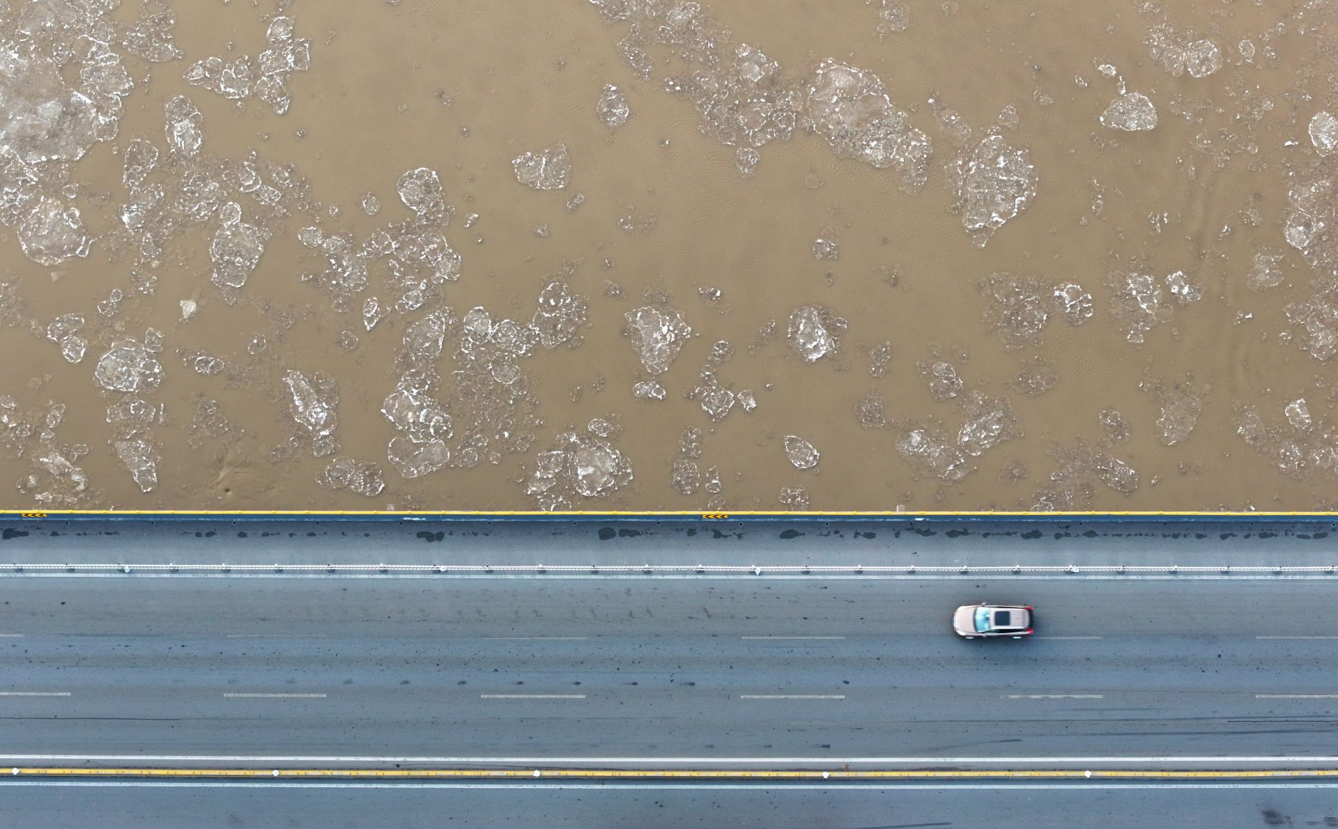 近日,受寒潮天气影响,黄河宁夏石嘴山段出现流凌景观,大面积的冰凌随着水流相互碰撞,构成一幅美丽的冬日画卷。