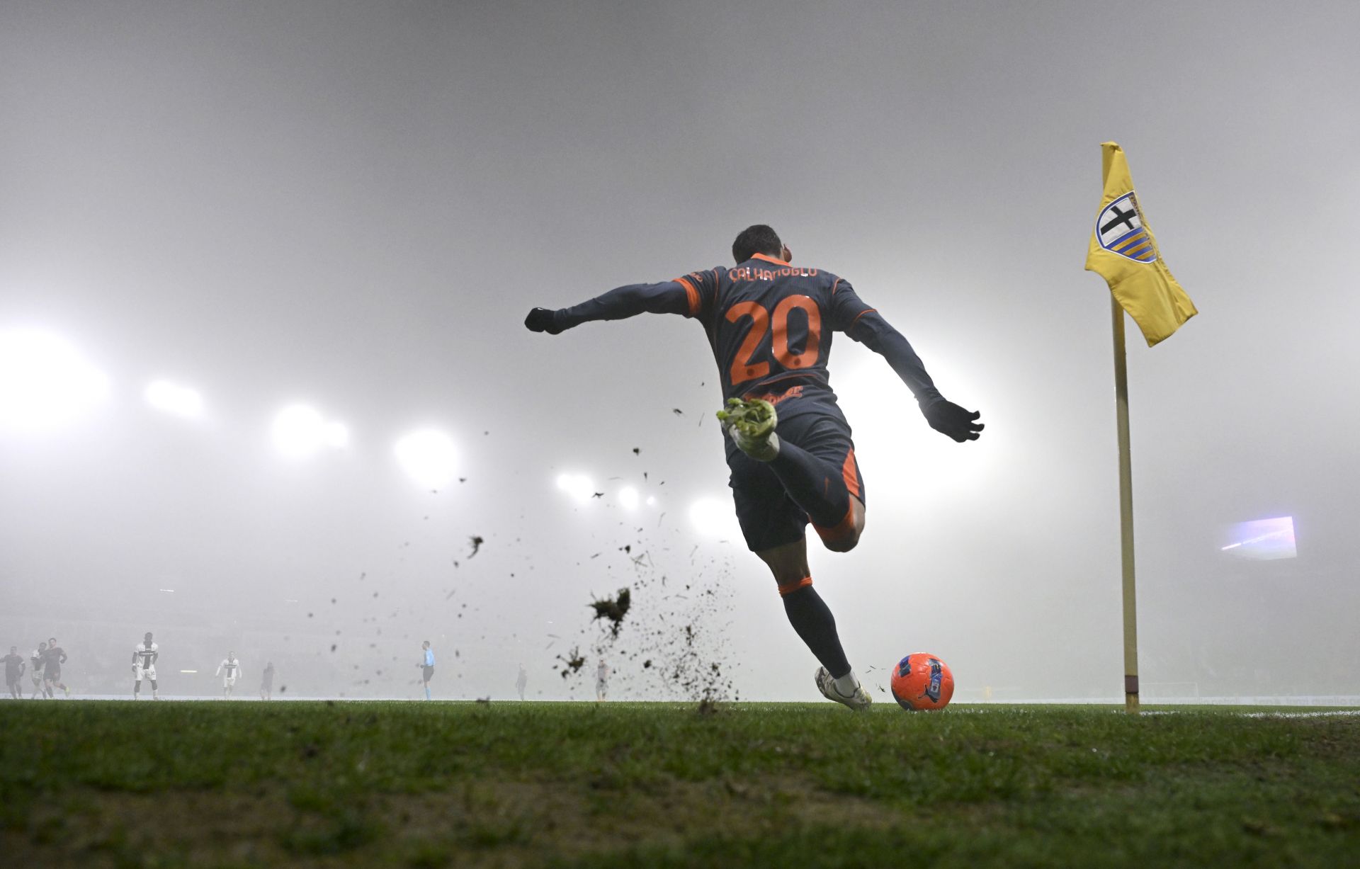 1月7日,国际米兰队球员恰尔汗奥卢在比赛中罚角球。