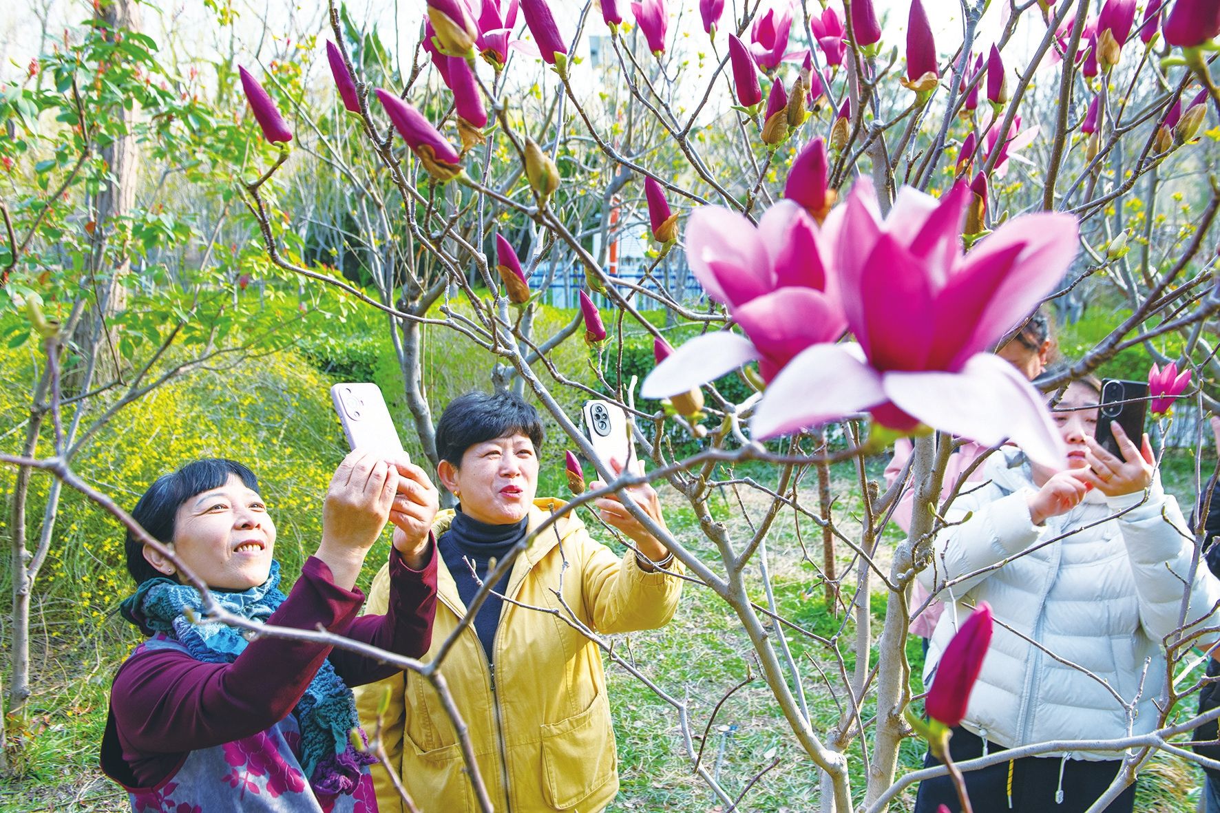 3月29日,随着气温转暖,我市街头巷尾花红柳绿,处处洋溢着春日的生机与活力。许多市民趁着晴好天气走出家门,或携家带口踏青赏景,或三五成群健身运动,以多种方式畅享春日好时光。在我市长河公园、中心广场及减河湿地风景区,随处可见市民悠闲漫步、嬉戏游玩的身影。春光明媚,草木葱茏,一幅人与自然和谐共生的春日画卷正徐徐展开。 记者郭庆萍摄