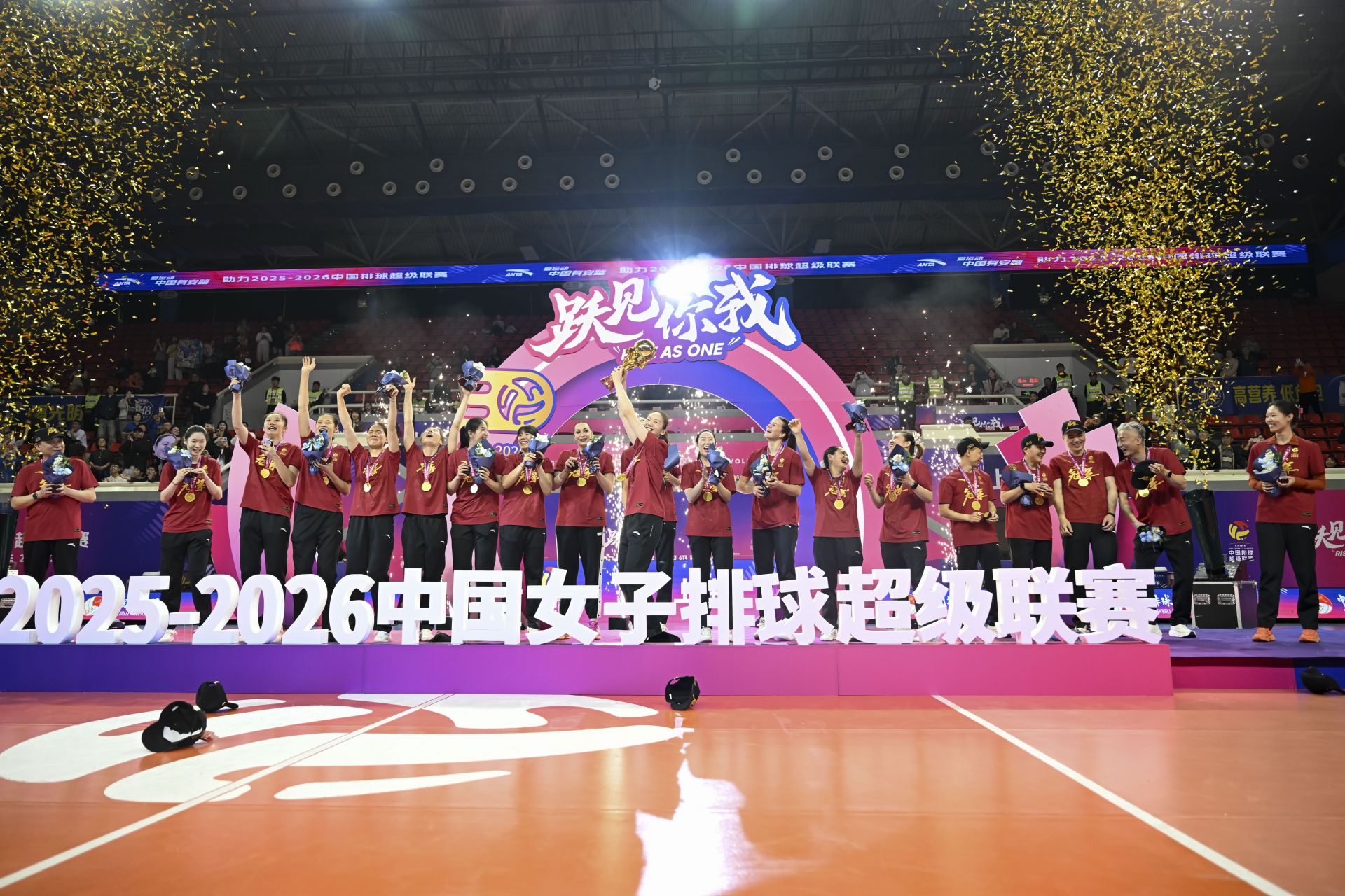 4月1日,在2025-2026赛季中国女子排球超级联赛总决赛冠亚军决赛第三回合比赛中,上海光明优倍队主场3比0战胜江苏中天钢铁队,最终以2比1的总比分夺得冠军,江苏中天钢铁队获得亚军。