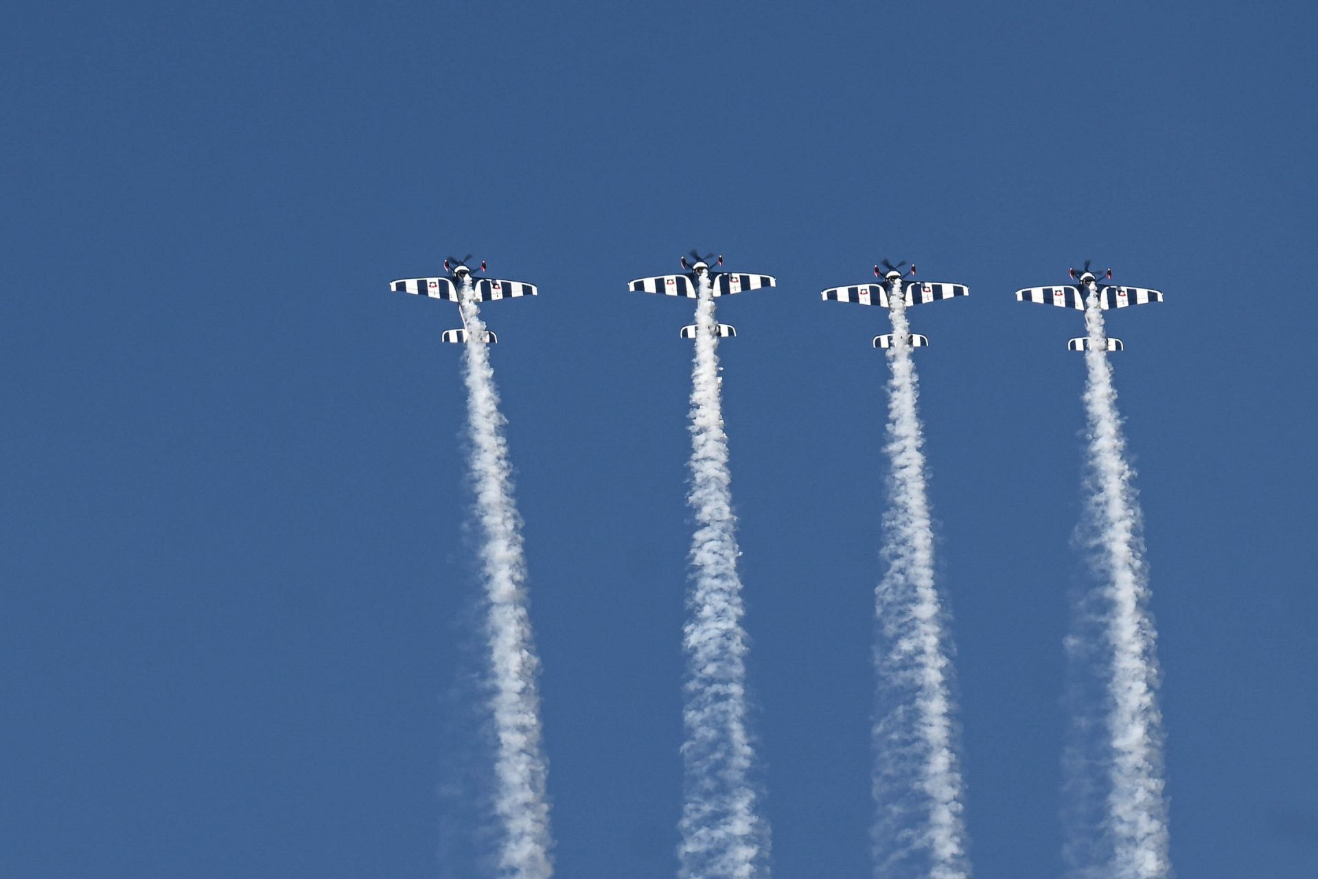 这是4月7日在智利圣地亚哥首都大区普达韦尔举行的2026年国际航空航天展上拍摄的飞行表演。