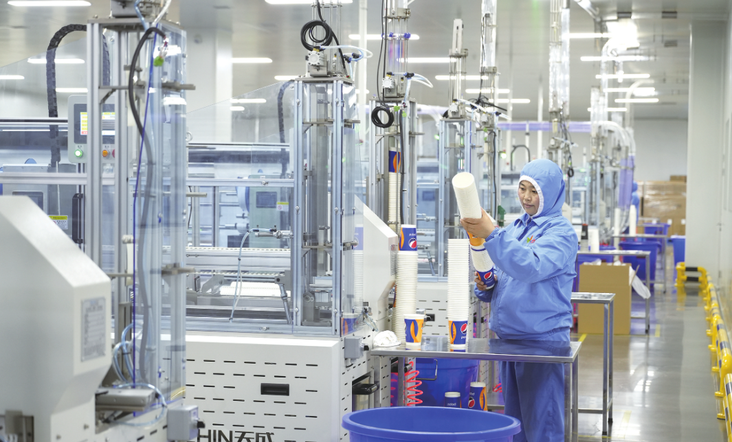 3月30日,位于天衢新区的日彩(德州)环保科技有限公司生产现场井然有序、运转高效。日彩环保科技是一家集塑料软包装制品、纸质包装制品、热成型吸塑制品、无纺布制品等食品包装材料研发、生产、销售于一体的高新技术企业。2025年6月,公司年产5万吨高端绿色环保食品包装智能制造项目一期建成投产,当年实现销售收入1.5亿元。今年,公司投资2亿元的二期项目正加紧筹建,致力于打造华北地区重要的绿色包装材料生产基地。公司三成产品远销海外,覆盖日本、韩国、澳大利亚及欧美等市场。目前,公司纸制品和无纺布制品的订单已排至6月底,塑料制品的订单排至2026年底。