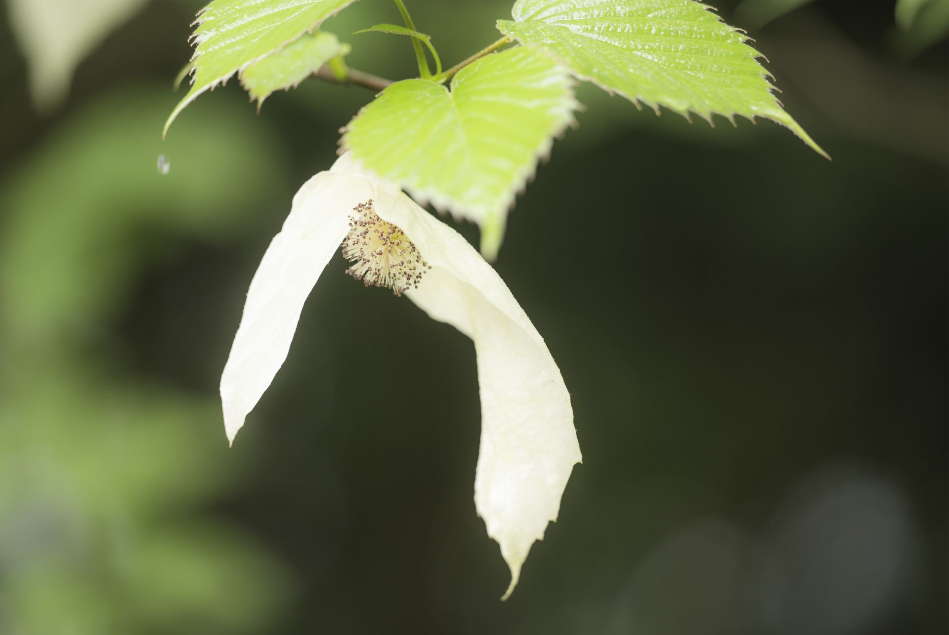 4月13日在湖北宜昌三峡坝区185平台珍稀植物示范区拍摄的珙桐花。