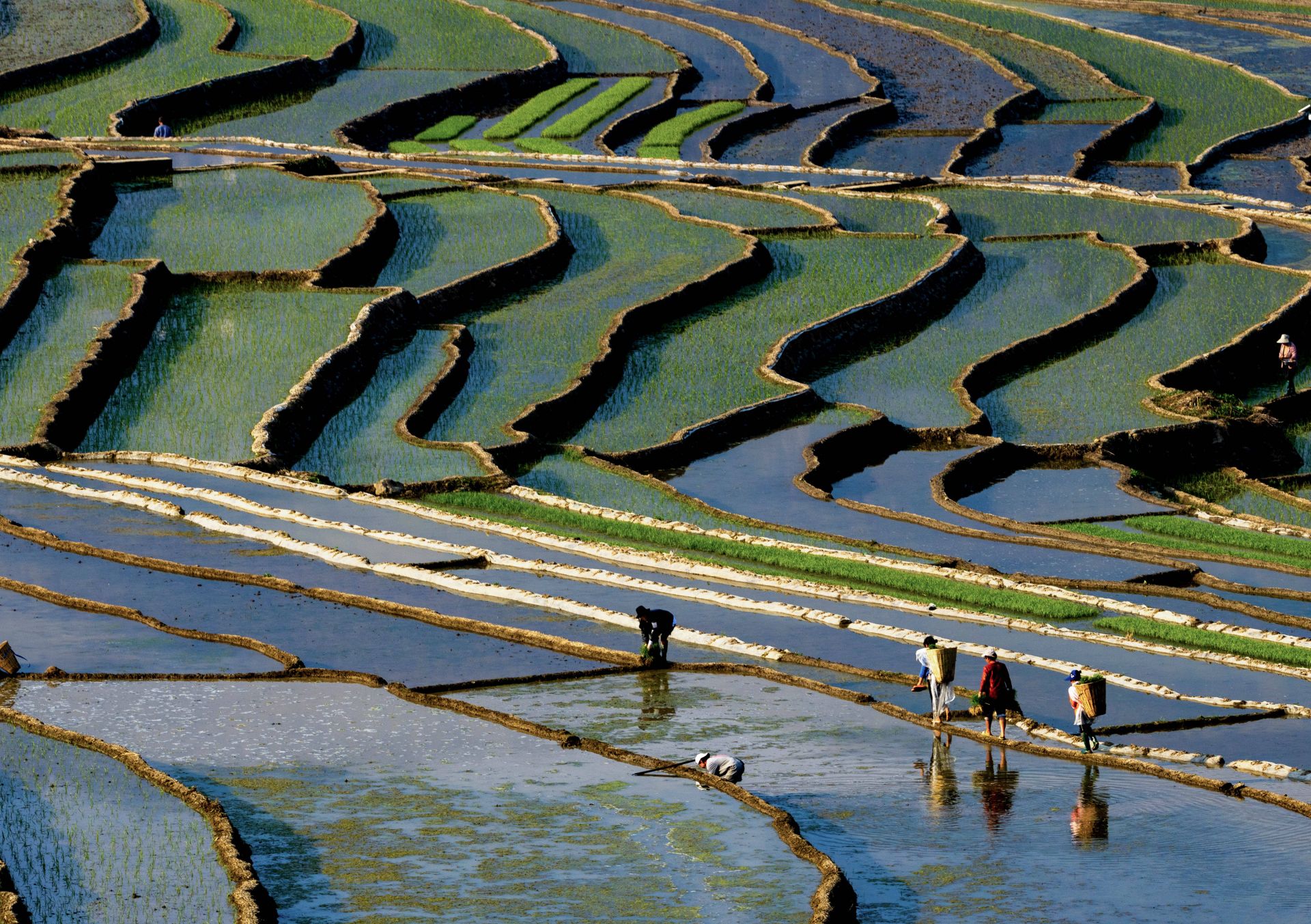 4月18日,村民在梯田上劳作。