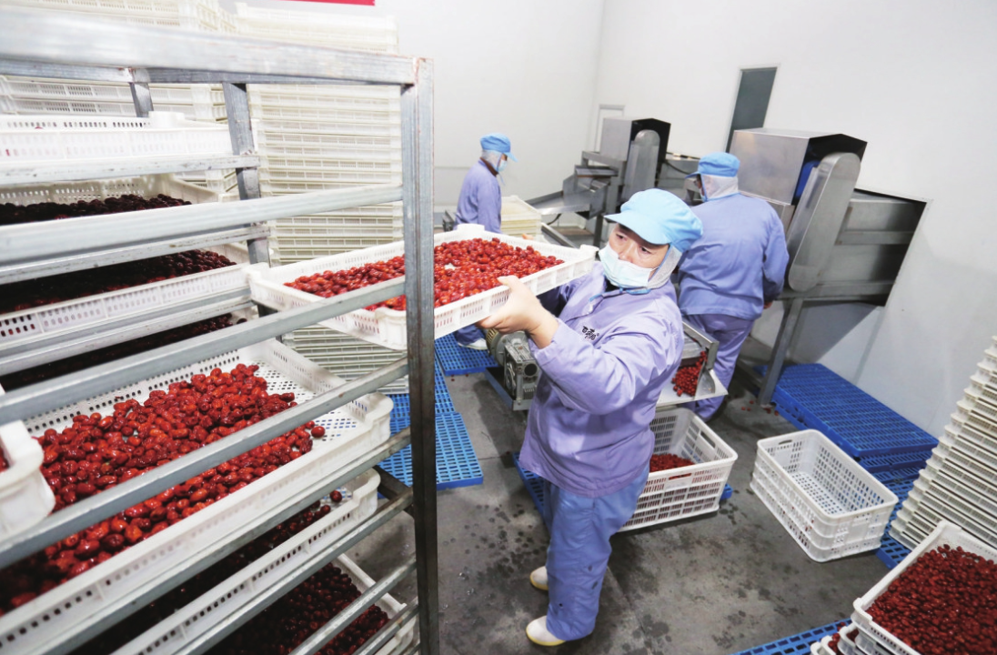 百枣纲目公司工人在加工小枣。 陈宏青摄