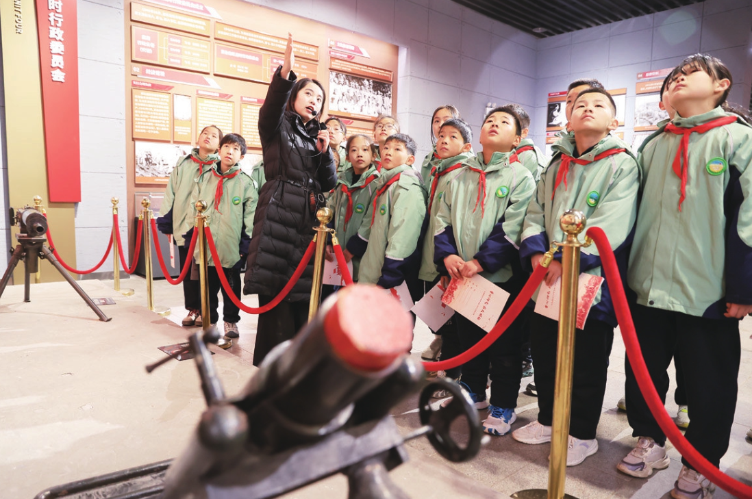 小学生在乐陵市冀鲁边区革命纪念馆聆听革命故事。 周广学摄