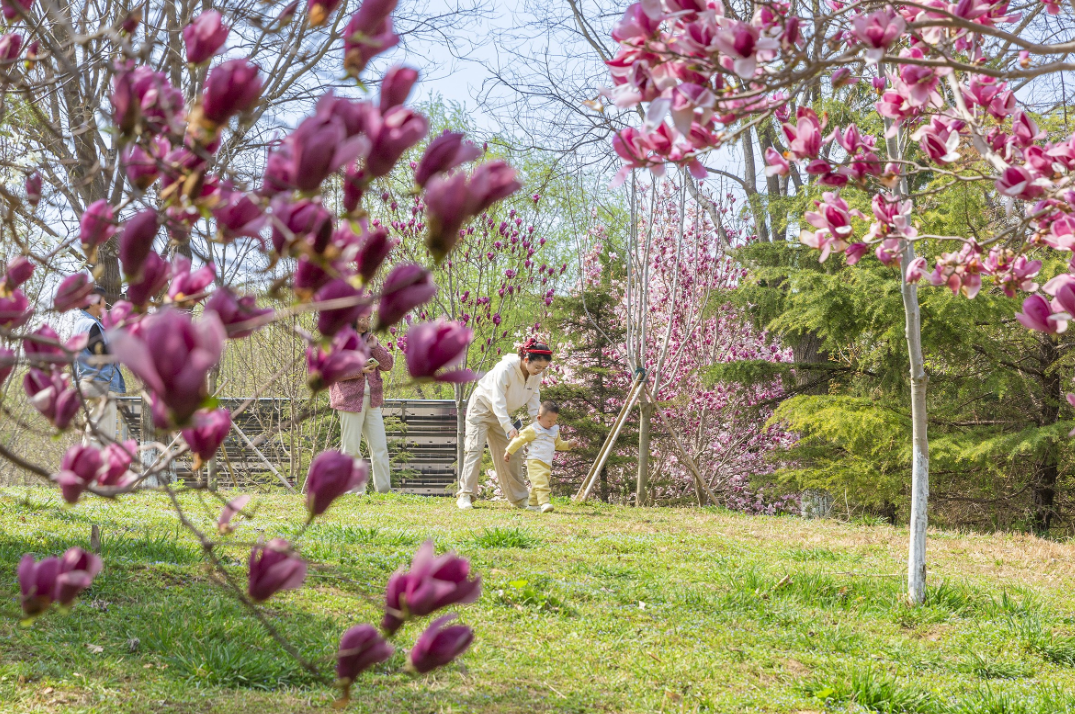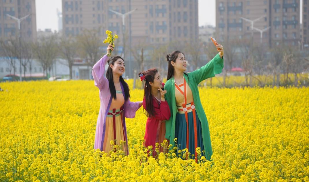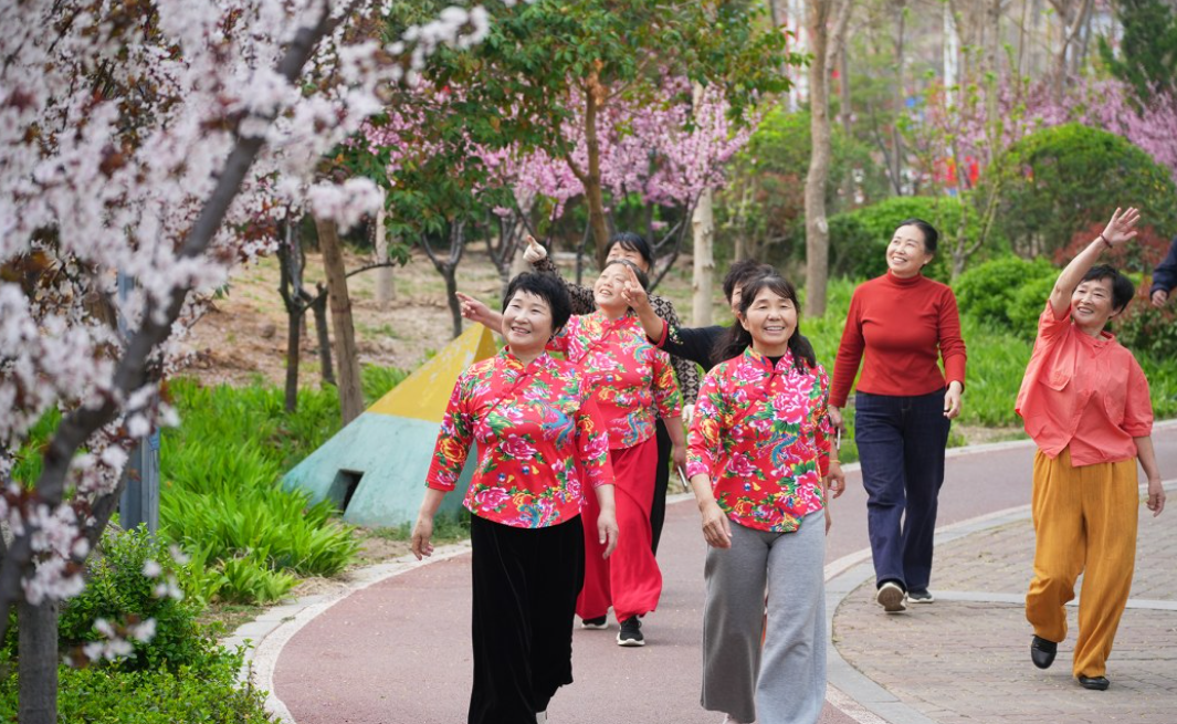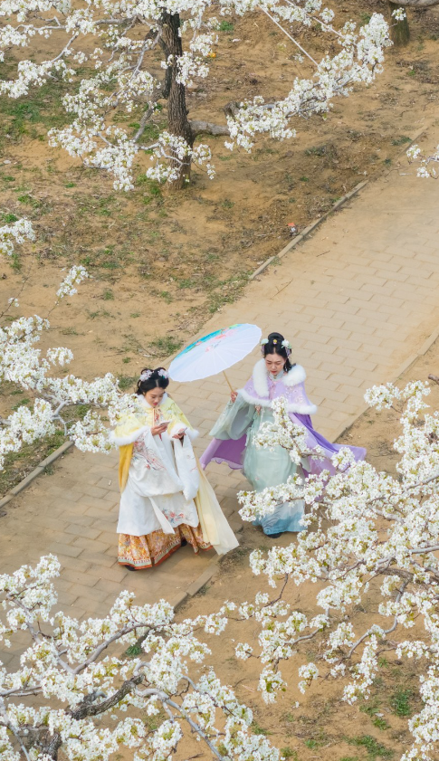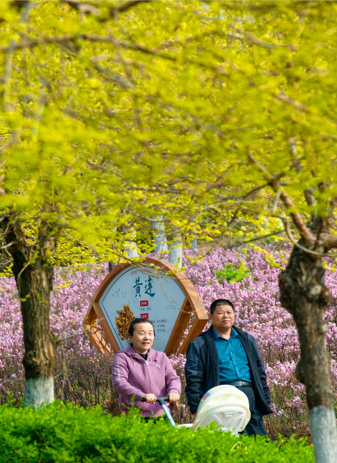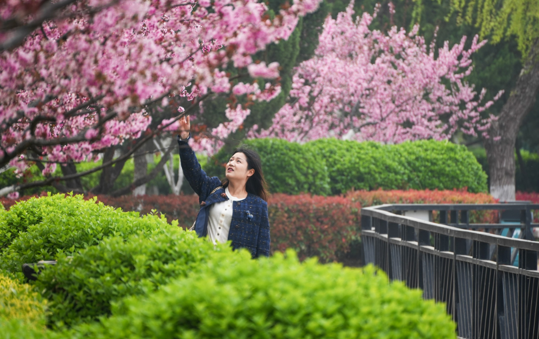 大街小巷,粉色紫色黄色成片成团,一路前行,一路花香。在长河公园和月湖公园,山桃、榆叶梅、紫荆次第开放,吸引市民来此健身漫步、打卡拍照。在夏津香雪园,千亩梨花如雪绽放,游客身着古装赏花,从“看景”变为“入景”,解锁春日新景致。