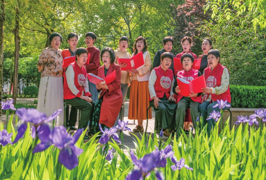 在天衢新区尚德社区,德州女子阅读会队员在春光里朗诵