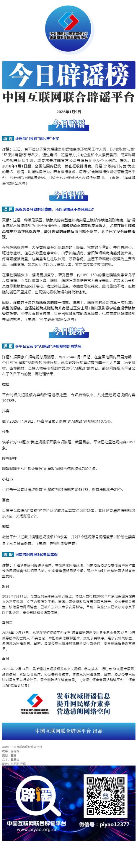 多平台公布涉“AI魔改”违规视频处置情况——今日辟谣(2026年1月9日)