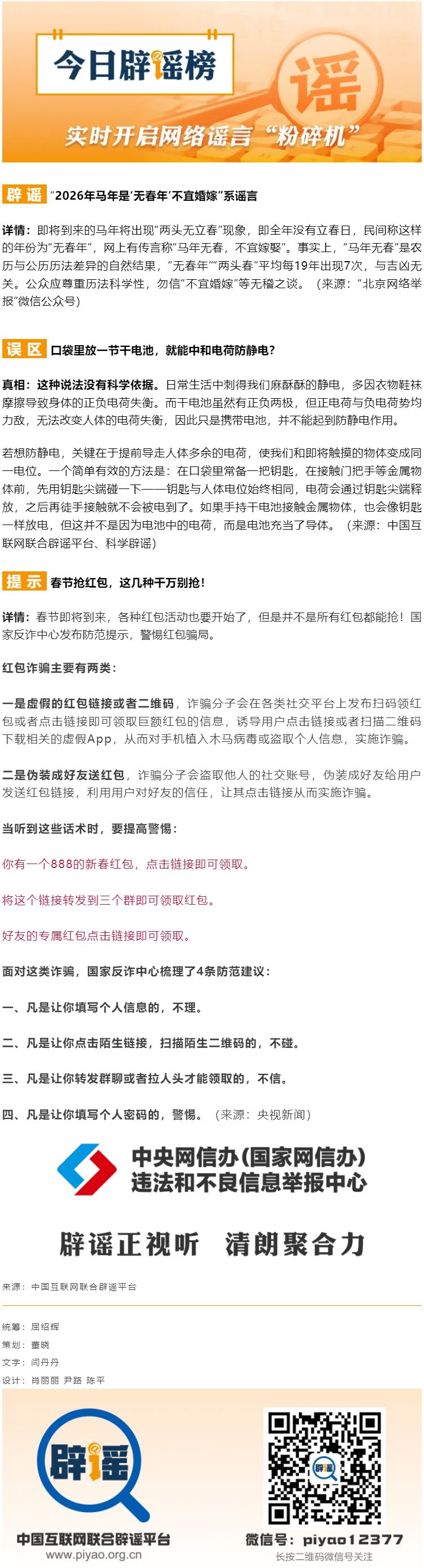 “2026年马年是‘无春年’不宜婚嫁”系谣言(2026·02·14)