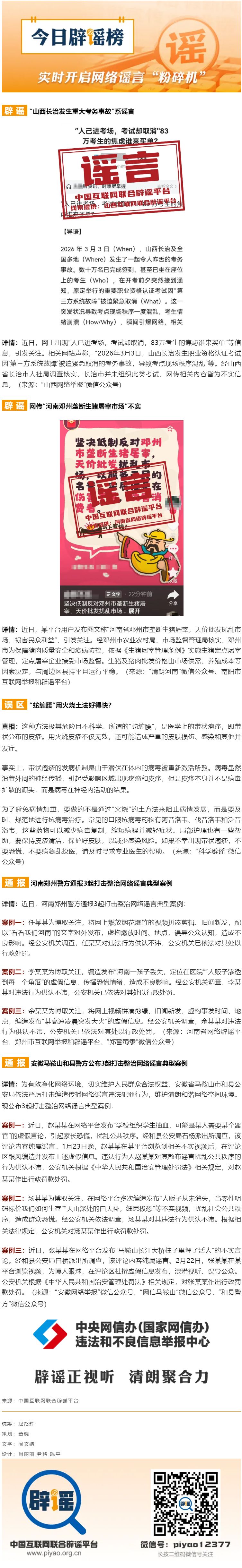 “山西长治近日发生重大考务事故”系谣言(2026·03·04)