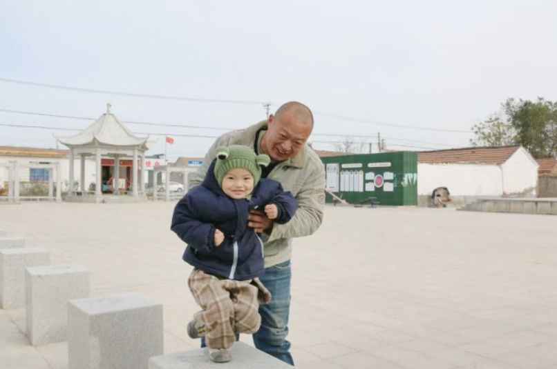 村内广场上,老人带着孩子玩耍